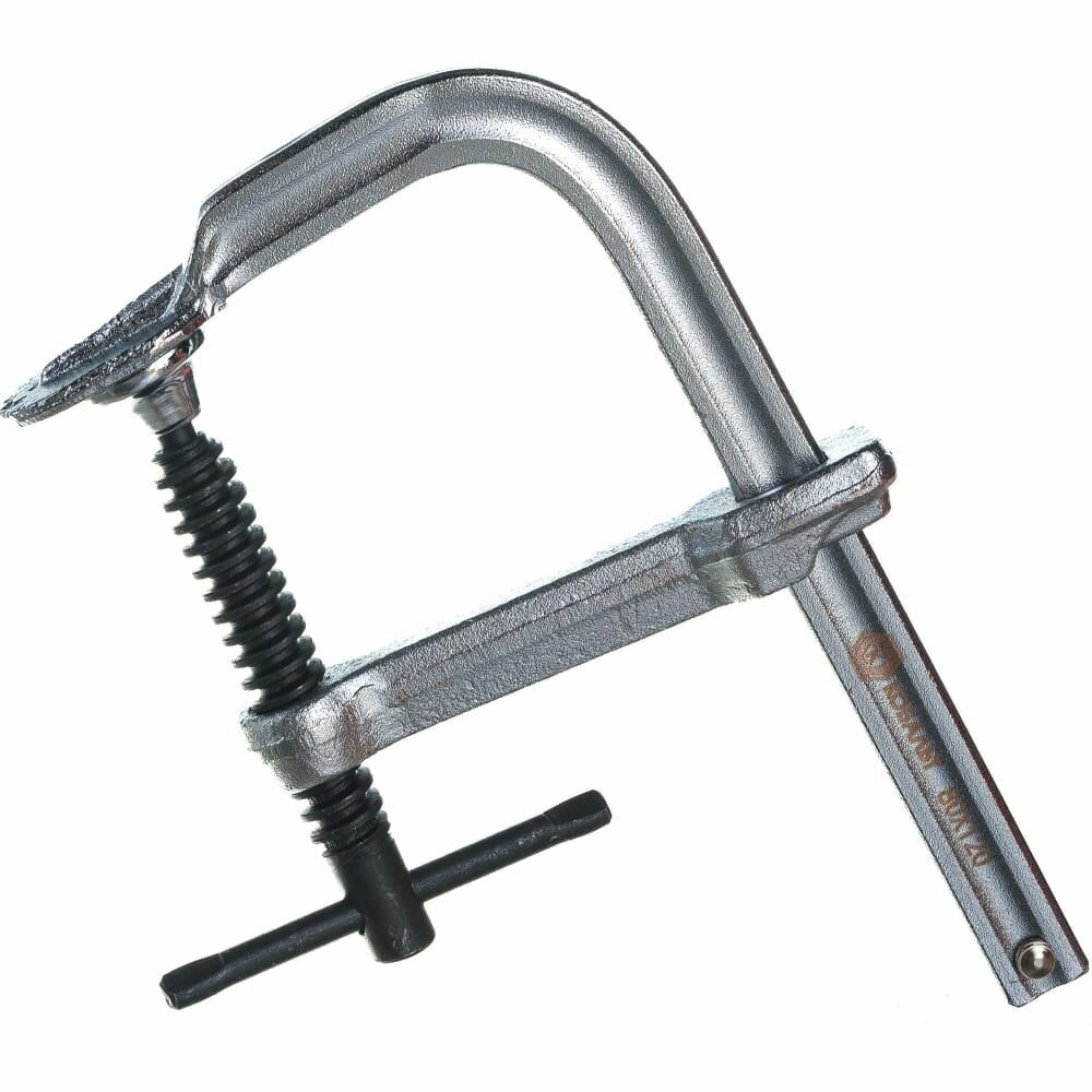 Струбцина F-образная кованая 80х120мм КОБАЛЬТ , предназначена для временной быстрой фиксации различных деталей и заготовок между собой или к верстаку для дальнейшей обработки, сварки или склейки.Преимущества Струбцина изготовлена из углеродистой конструкционной стали Подвижная губка с винтом скользящая по рейке позволяет производить быстрый захват деталей разного размера для повышения скорости работы Толщина зажимаемых заготовок до 120 мм Глубина захвата 80 мм Усилие сжатия 250 кгс