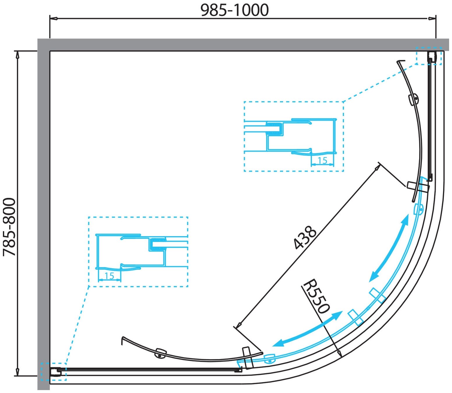 Радиальный асимметричный душевой уголок BelBagno Due 100х80 DUE-RH-2-100/80-C-Cr.