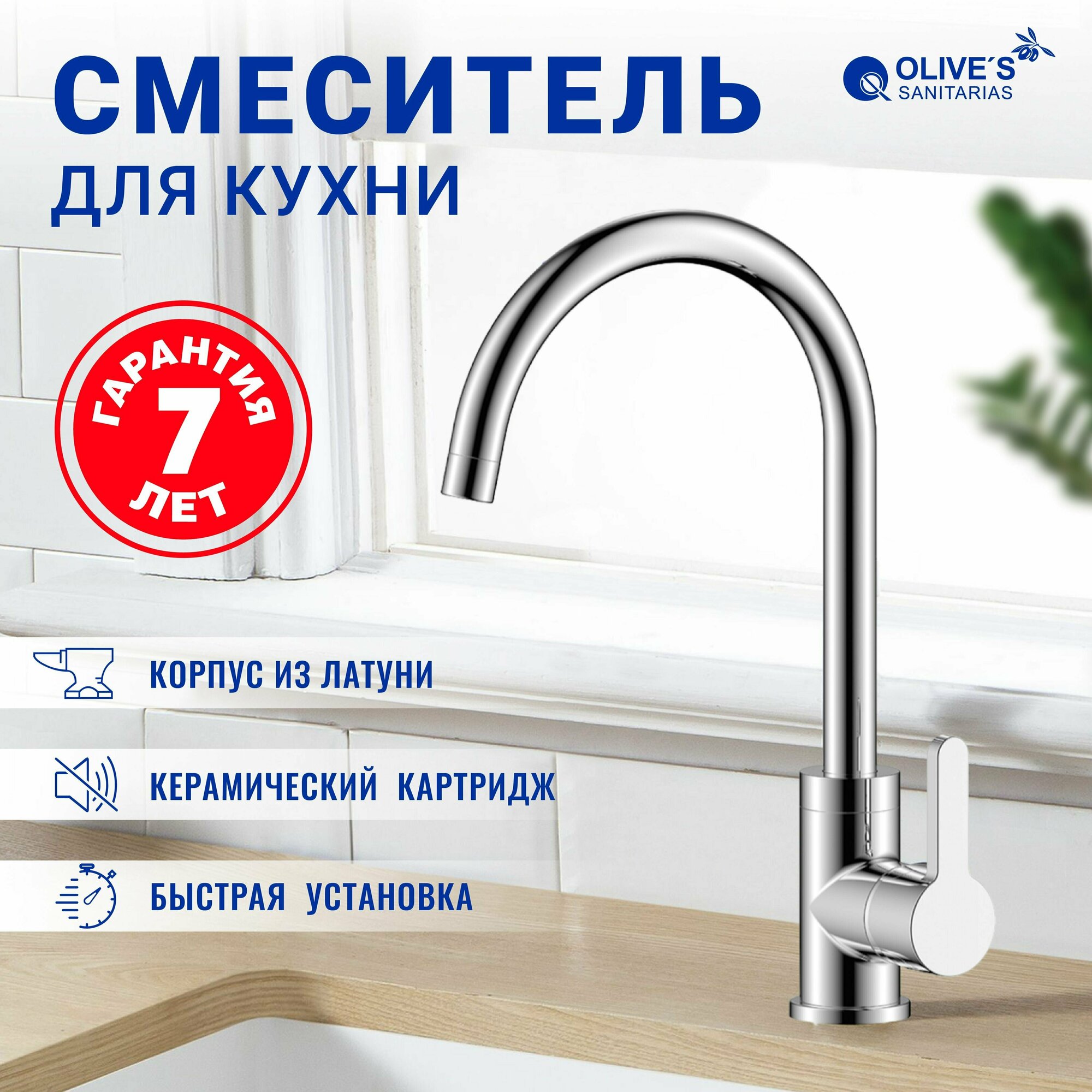 Однозахватный смеситель для кухни Torres с удобным высоким изливом. Латунный корпус из высококачественного сплава HQ Brass и двухслойное никель-хромовое покрытие Liquid Diamond — позволяют увеличить срок службы изделия до 25 лет. OLIVE’S предоставляет расширенную гарантию 7 лет на корпус, покрытие и картридж смесителя. Смеситель комплектуется системой быстрой установки Fast Fix, благодаря которой Вы сможете легко установить смеситель без использования дополнительных инструментов.