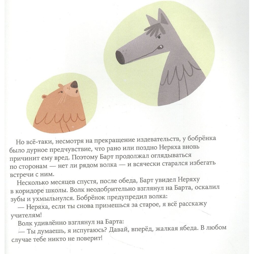 Бобрёнок Барт — маленький и очень трудолюбивый. Он ходит в школу, помогает родителям и старается быть дружелюбным со всеми зверями. Поэтому Барт очень испугался и расстроился, когда его одноклассник, хулиган-волк Неряха, начал задирать его ни с того ни с сего! Ведь бобренок не сделал ему ничего плохого. Как же следует поступить Барту? Может, стоит пожаловаться родителям или учителю? Или просто игнорировать нападки волка? А может, и вовсе стоит с ним подраться?..