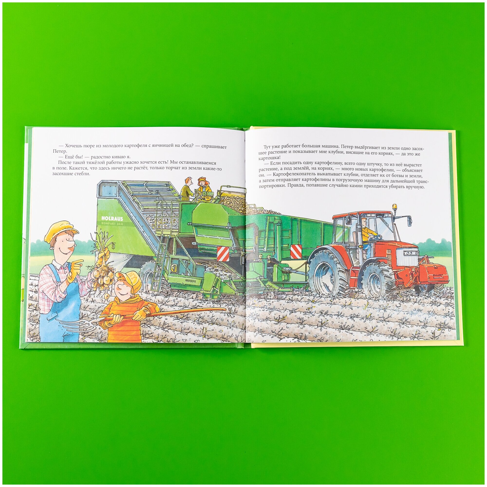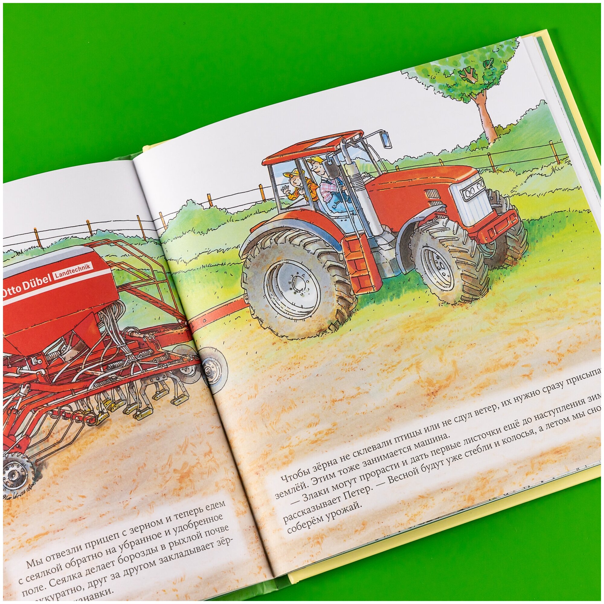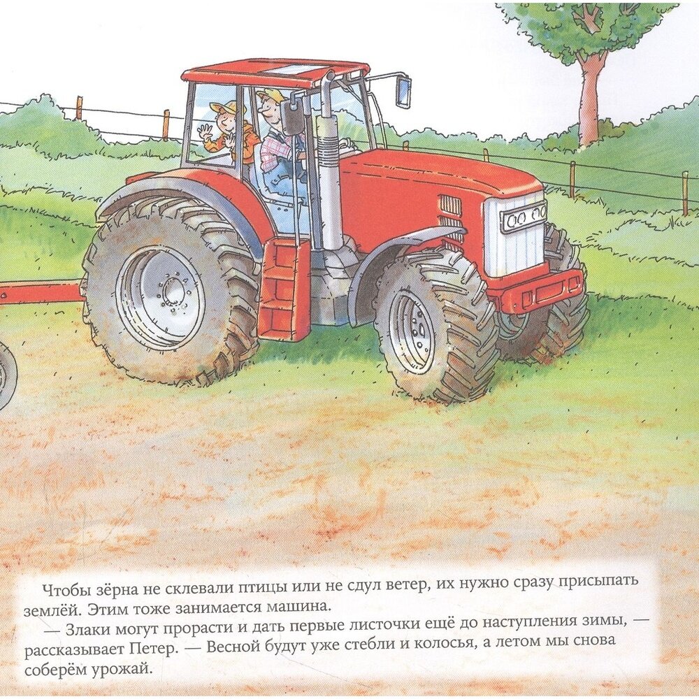 Все книги построены по принципу «один день из жизни...»: герои историй, дети, приходят в гости на работу к своим взрослым знакомым. В этой мальчик гостит на ферме и узнаёт много нового о буднях фермера: как доят коров и поддерживают чистоту в стойлах, как называется комбайн, который собирает урожай, для чего нужен культиватор и многое другое.