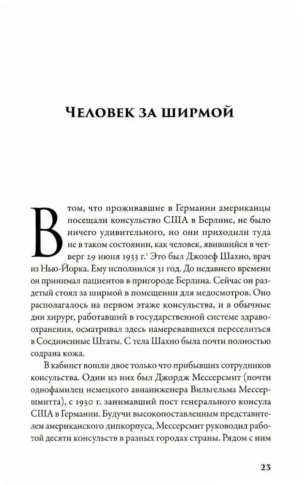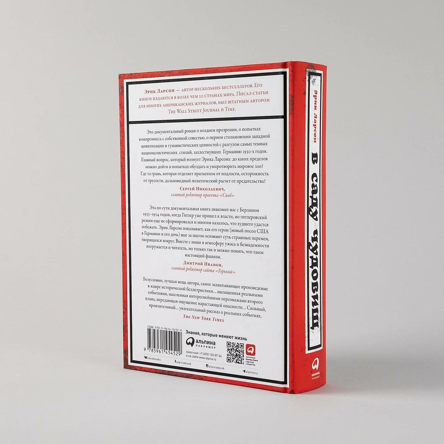 Известный журналист и автор нескольких бестселлеров Эрик Ларсон предлагает читателю погрузиться в атмосферу Берлина 30-х гг. XX в., в переломный период новейшей истории Германии — от назначения Гитлера на пост канцлера до узурпации им власти и превращения страны в «сад чудовищ» — диктатуру, активно готовящуюся к войне. В этот период США придерживались позиции невмешательства и предпочитали не замечать милитаризации, преследования инакомыслящих и признаков будущего террора. Главные герои книги — Уильям Додд, в 1933 г. назначенный послом США в Берлине, и его дочь, светская львица, которая поначалу восхищалась гитлеровским режимом. В основе сюжета — официальные документы, мемуары, дневники и письма, позволяющие узнать о судьбе главных героев: дипломатов, общественных деятелей, журналистов, представителей нацистской верхушки и простых людей. Вместе с послом и его семьей читатель проходит путь от неприятия реальности к осознанию зла, которое несет режим нацистов, а затем — к отчаянным, но безуспешным попыткам предупредить мир о грозящей опасности.