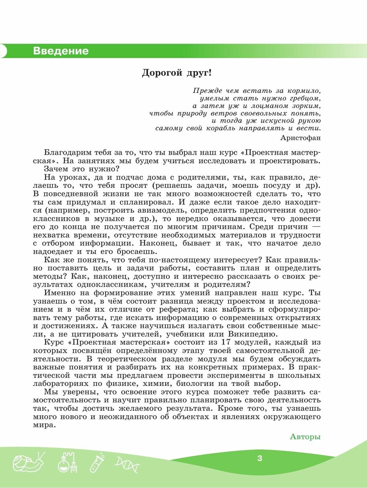 Предлагаемое пособие обеспечивает организацию внеурочной деятельности в 5-9 классах и реализует требования ФГОС. Книга поможет школьникам, учителям и родителям погрузиться в проектную деятельность по предметам естественно-научного цикла (биология, физика, химия) и грамотно реализовать ее в практической жизни. Пособие состоит из двух модулей. Теоретический модуль построен по видам проектной/исследовательской деятельности, содержит планируемый результат, объясняет вид рассматриваемой проектной/исследовательской деятельности, закрепляет понимание. Практическая часть (Моя мастерская), направлена на отработку/ закрепление изученной теории на предметном (биологическом, физическом, химическом) материале. Пособие адресовано учащимся 5-9 классов, учителям и родителям и может быть использовано с любым предметным содержанием.