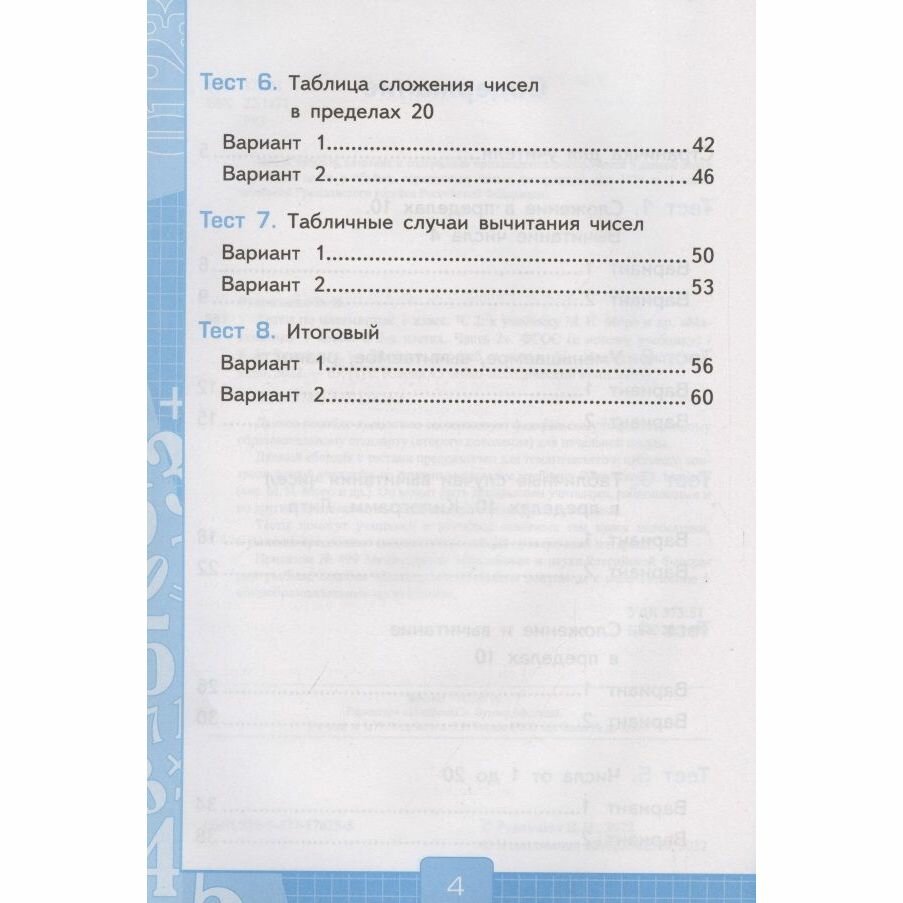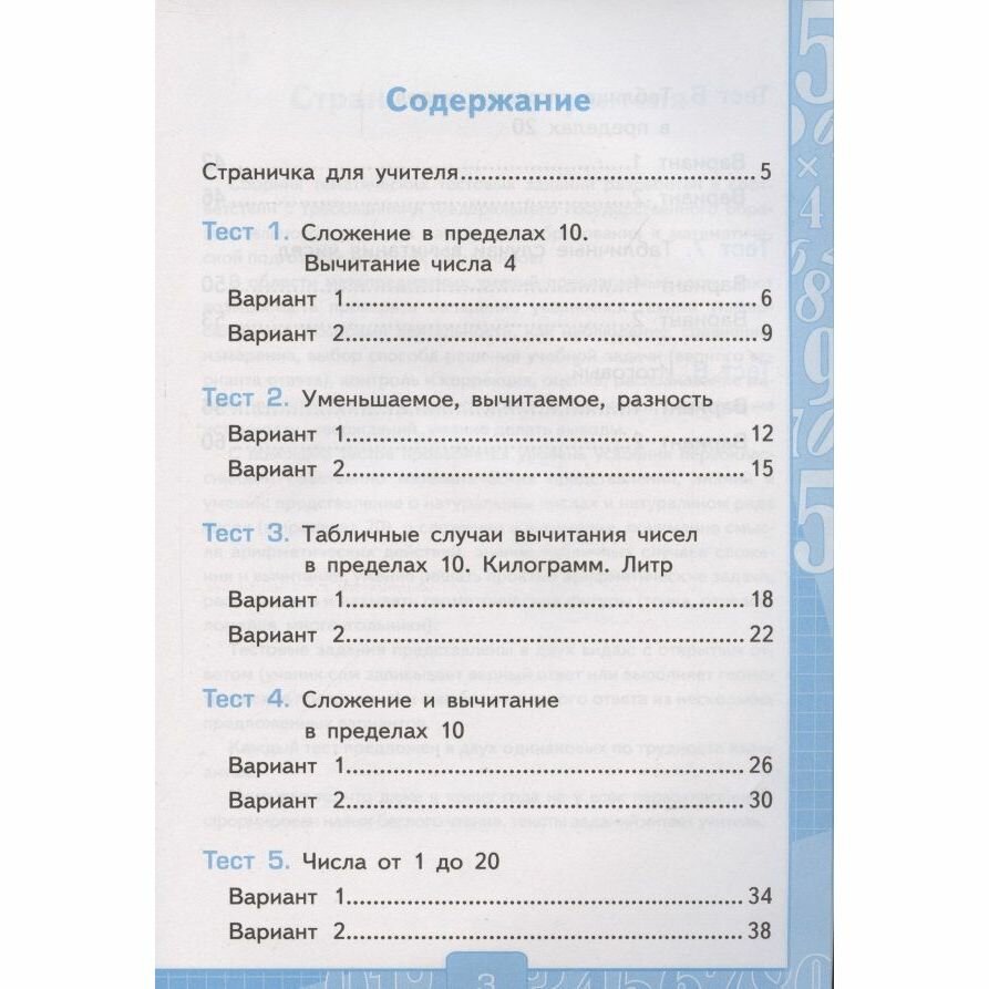 Данный сборник с тестами предназначен для тематического и итогового контроля знаний учащихся по основным разделам учебника «Математика. 1 класс» (авт. М. И. Моро и др.). Он может быть использован учителями, работающими и по другим комплектам, так как основные темы курсов совпадают.