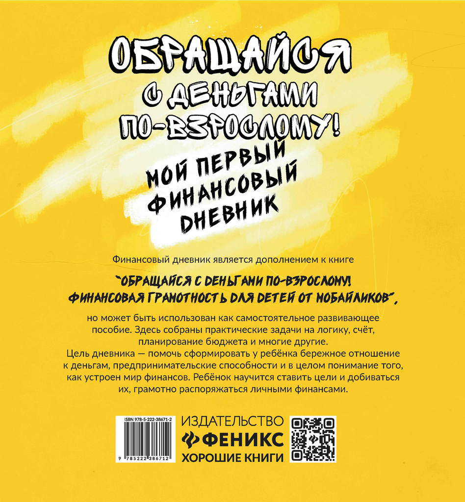 Финансовый дневник является дополнением к книге "Обращайся с деньгами по-взрослому! Финансовая грамотность для детей от мобайликов", но может быть использован как самостоятельное развивающее пособие. Здесь собраны практические задачи на логику, счёт, планирование бюджета и многие другие. Цель дневника - помочь сформировать у ребёнка бережное отношение к деньгам, предпринимательские способности и в целом понимание того, как устроен мир финансов. Ребёнок научится ставить цели и добиваться их, грамотно распоряжаться личными финансами.