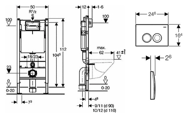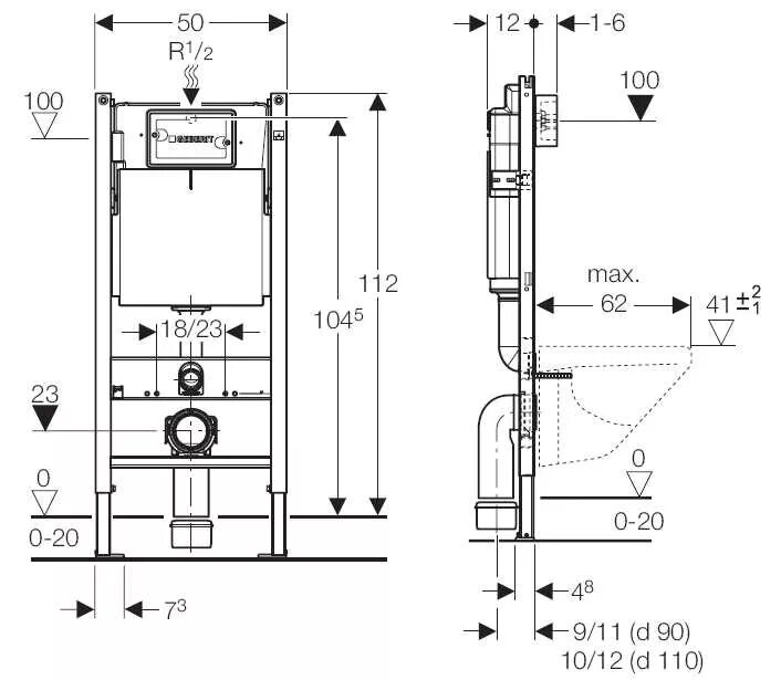 | GEBERIT 458.124.21.1 – система инсталляции для подвесного унитаза. Скрывает все технические элементы | канализационный выход |