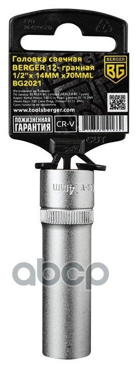Головка свечная 12-гранная (1/2", 14 мм/70 мм) Berger BG используется совместно с гайковертами или ручным инструментом. Модель изготавливается из высококачественных материалов, что гарантирует высокую прочность и устойчивость в механическим воздействиям.