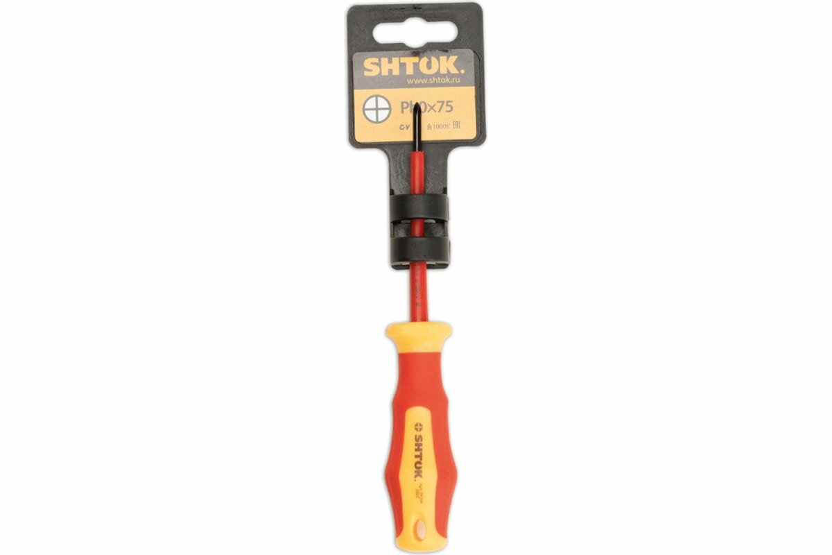 Диэлектрическая крестовая отвертка SHTOK 1000В Ph0x75 мм предназначена для работы с крепежом, имеющим рабочий профиль Phillips, а также для выполнения работ под напряжением. Предусмотрено отверстие в рукоятке - для подвешивания. Рабочая часть, выполненная из хром-ванадиевой стали, увеличивает прочность и износоустойчивость отвертки.
