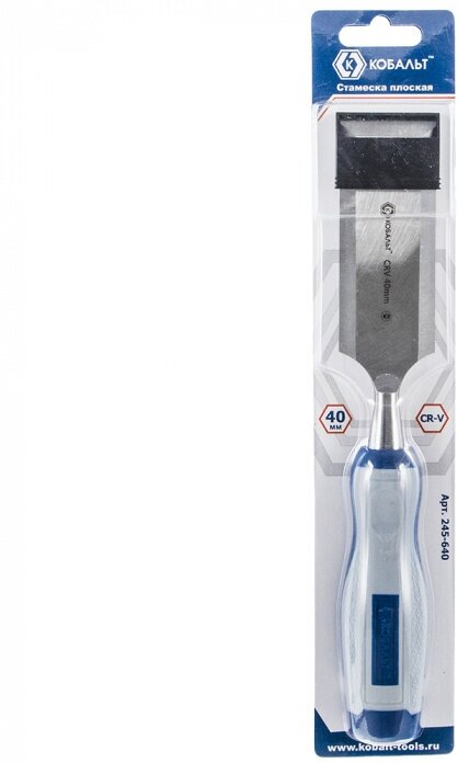 Плоская стамеска 40х140 мм, CR-V, двухкомпонентная рукоятка КОБАЛЬТ предназначается для выполнения столярных работ с использованием деревянных заготовок. Изделие выполнено из прочной и качественной стали, рабочий профиль имеет плоскую форму. Двухкомпонентный материал ручки препятствует скольжению инструмента в руке пользователя.