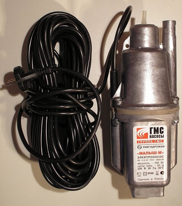 Вибрационный насос с верхним забором воды предназначен для скважин (диаметром более 110 мм), колодцев, резервуаров и открытых водоемов, орошения сада и огорода. Электронасос способен перекачивать воду на большие расстояния по горизонту (свыше 100 метров), т.е. подавать воду из водоемов, расположенных на значительном удалении от мест пользования водой. Технические особенности вибрационного насоса: Металлическая проточная часть. Верхний забор воды. Электрокабель длиной 25 метров.