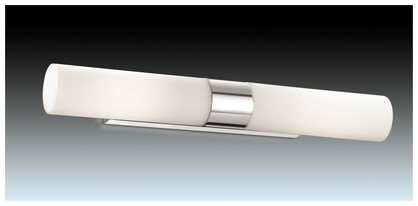 Настенный светильник серии Tingi создан специально для ванной комнаты с защитой IP44. Состоит из закрытого матового плафона и металлического основания цвета хром. Имеется выключатель. Цоколь E27. Мощность 2*60W. Нет ламп в комплекте.