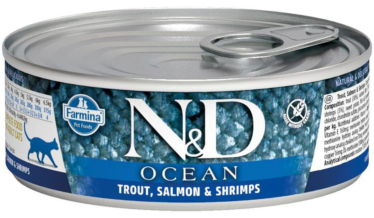 Влажный корм Farmina OCEAN CAT на основе тунца с добавлением лосося специально разработан для взрослых кошек.