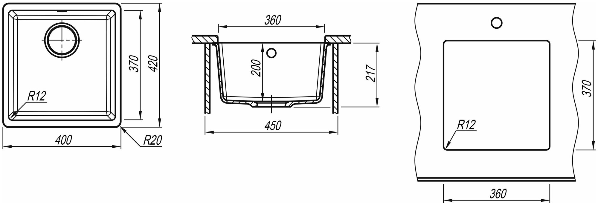 | Глубина чаши (мм) | 200 |