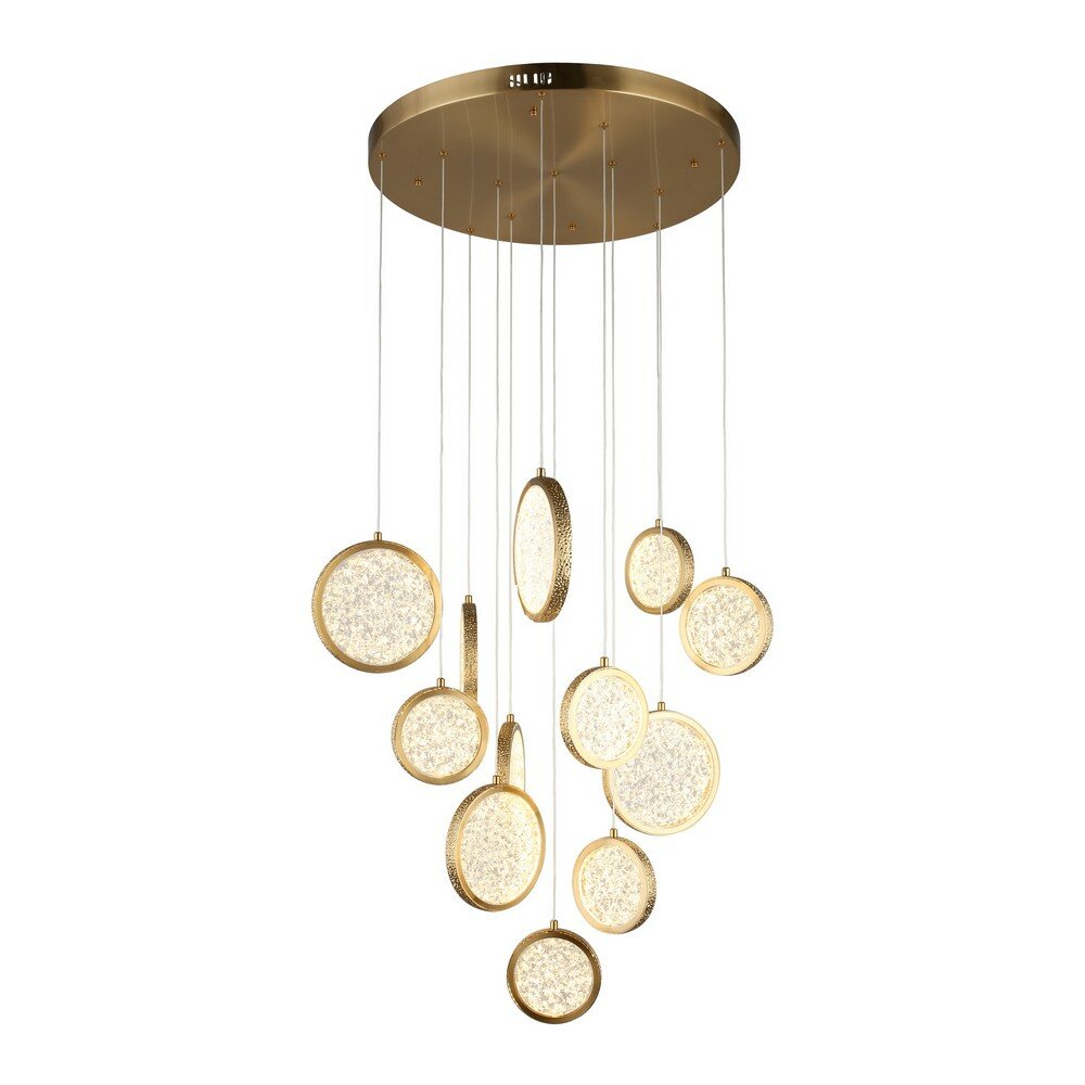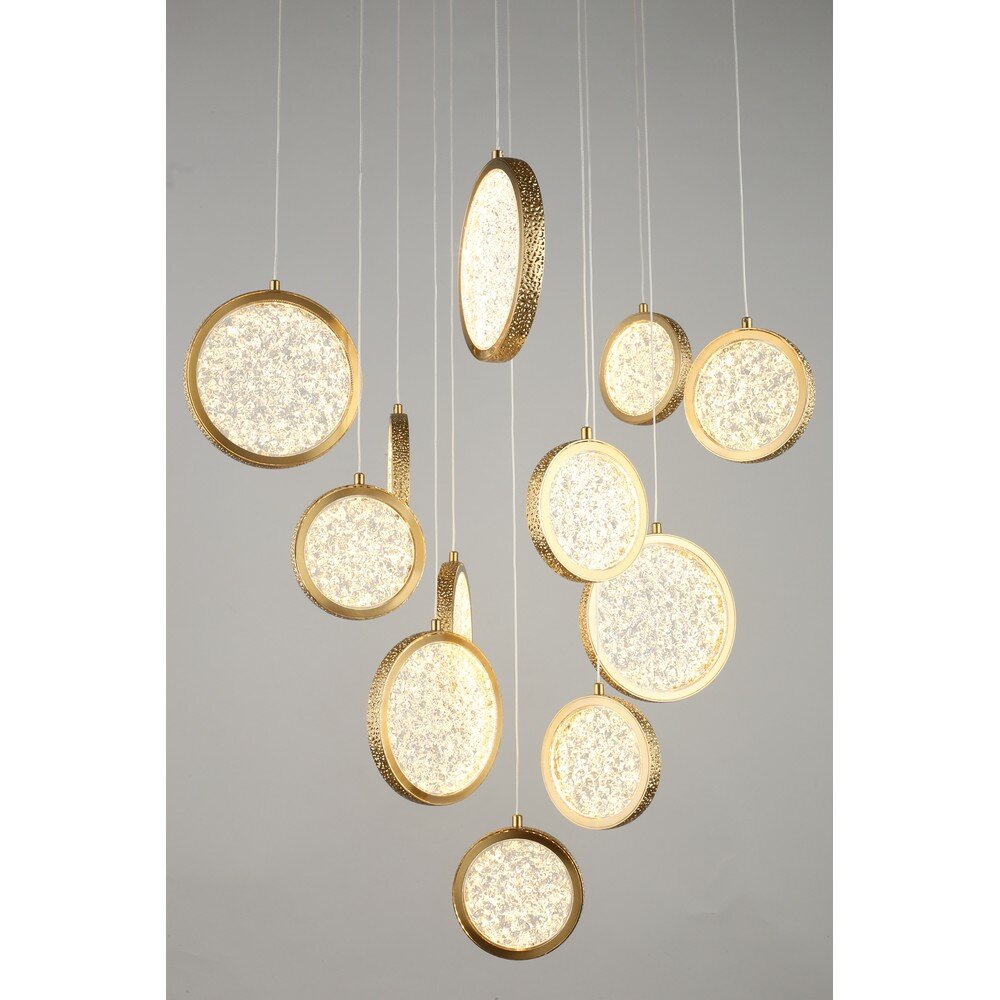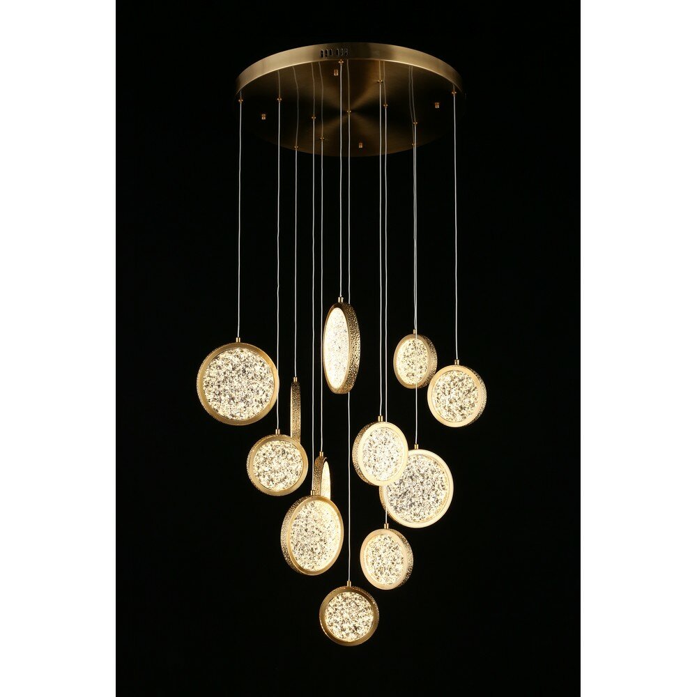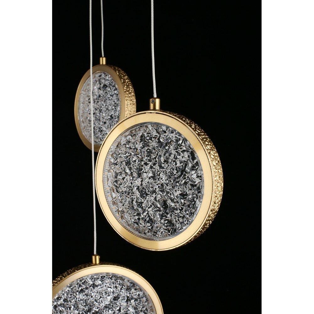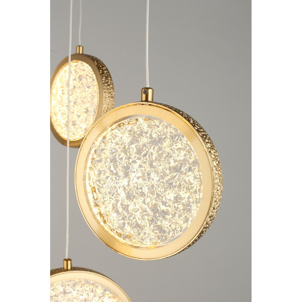 Люста прекрасно впишется в современные интерьеры, выполненные в стиле модерн или минимализм. Основание светильника выполнены из металла золотого цвета, центральная часть плафона выполнена из рифленого стекла и пропускает много света. Светильник можно использовать для освещения выбранной зоны самостоятельно, в группе или комбинированно.