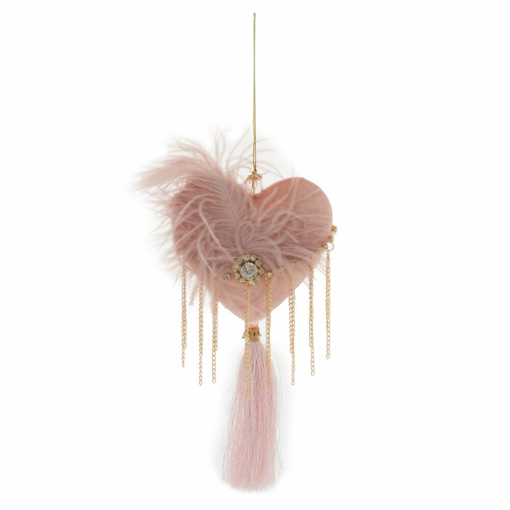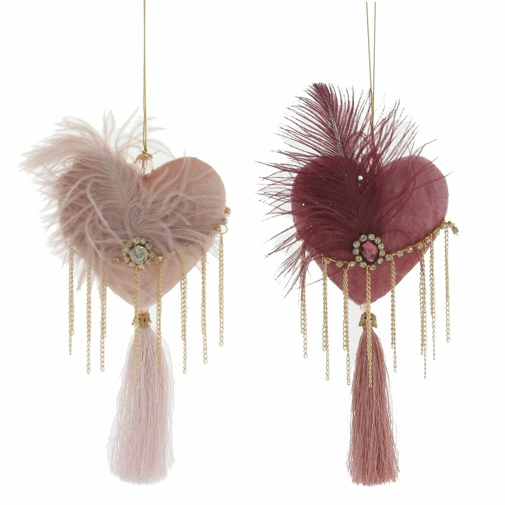 Новогоднее Сердечко с бархатным покрытием и кисточкой декорировано перьями и стразами. Это романтическое украшение придаст праздничной елочке выразительного шарма. Представлено в двух вариантах.