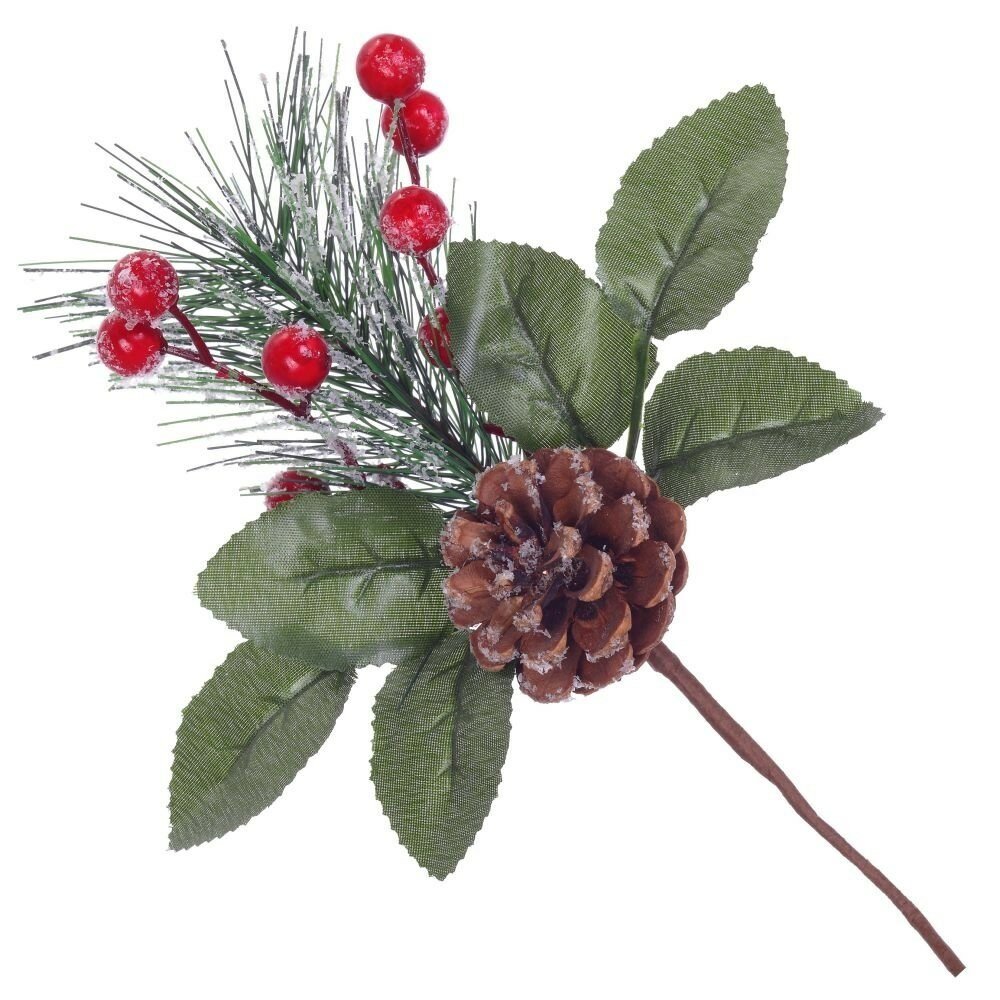 Ветка с листьями, шишкой и ягодами – настоящая находка для новогоднего декора. Станет отличным самостоятельным украшением, а также прекрасно впишется в любую праздничную композицию. Представлена в четырех вариантах.