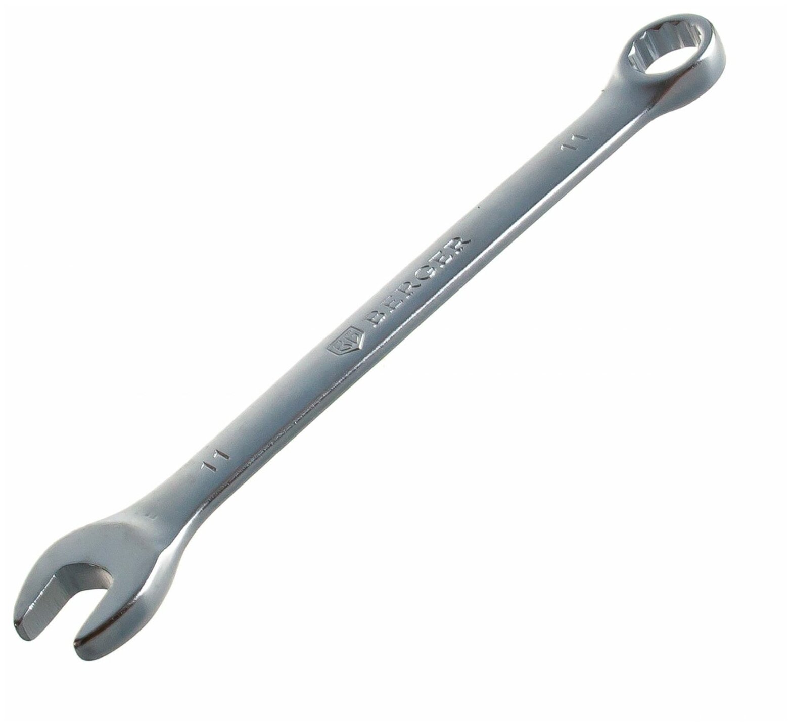 Ключ комбинированный 11 мм Berger - это двусторонний ручной инструмент, сочетающий в своей конструкции открытые рожковые и кольцевые зевы. Изделие очень прочное, надежное и долговечное в эксплуатации. Служит для профессионального использования в мастерских, автосервисах, производственных предприятиях и т. д.