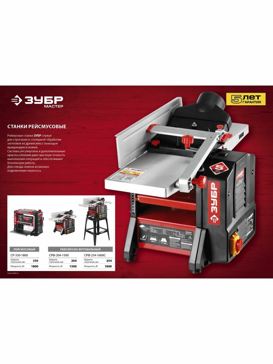 Станок рейсмусно-фуговальный "ЗУБР" арт. СРФ-254-1600С