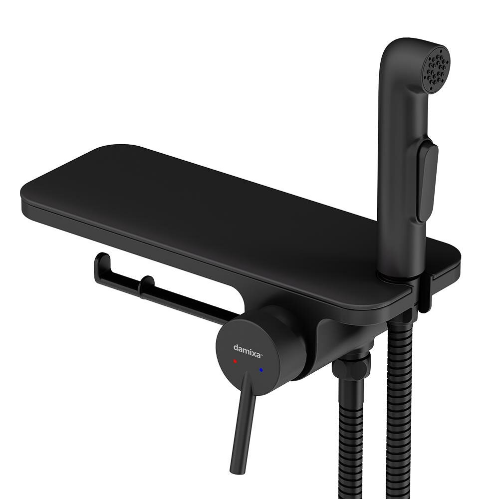 Гигиенический душ Damixa Origin Bit 773500300 черный матовый, отличается простотой и комфортом в использовании, а еще он выглядит невероятно стильно. Самое практиченое гигиеническое решение: смеситель оснащен удобной полочкой, на которой поместится все, что необходимо под рукой, и держателем для туалетной бумаги. Смеситель с гигиеническим душем имеет компактный размер и монтируется непосредственно в стену, что помогает установить его даже в небольших санузлах. Смеситель оборудован ручкой-стиком, которая удобно ложится в руку и гарантирует комфортное использование гигиенического душа. Керамический картридж Light Flow обеспечивает плавное управление ручкой смесителя и оптимальную регулировку температуры и мощности потока.