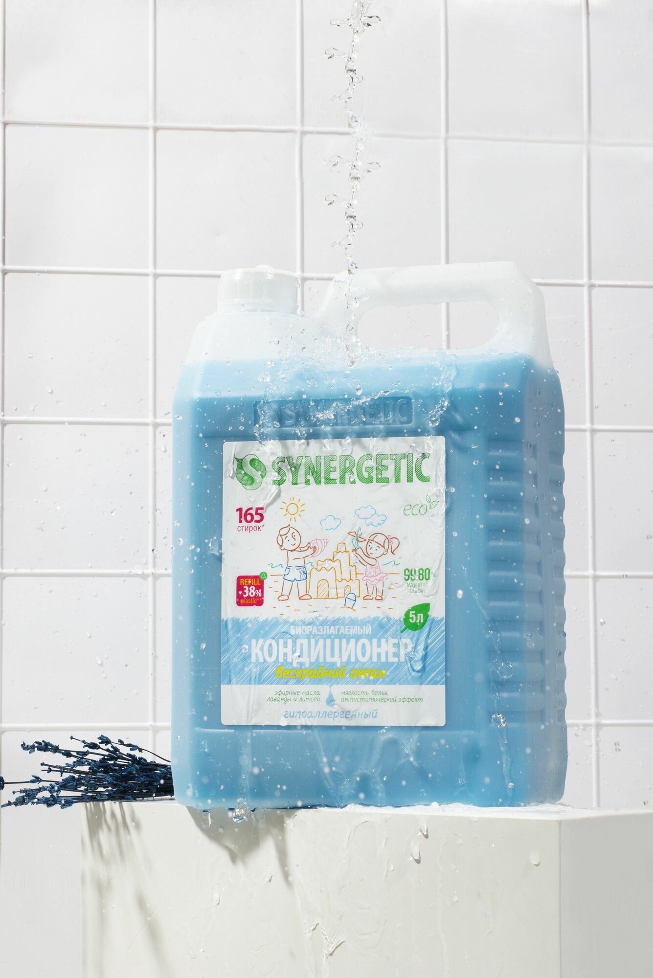 Гипоаллергенный кондиционер-ополаскиватель безопасен для природы и человека. Нейтрализует остатки средств для стирки на тканях. Безопасен для септических установок.