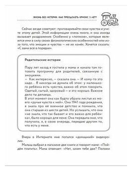 Ещё во время беременности выбирала литературу для себя, чтобы лучше понять ребенка и этапы взросления. Понравилось название и оглавление книги "Жизнь без истерик. Как преодолеть кризис 3 лет?". Важный для меня пункт - эмоции. Автор уделяет внимание не только детскому состоянию, эмоциям, но и чувствам родителя, что особенно важно. Также, в книге дается практический материал (возможность самим сочинять сказки, направлять ребенка и его эмоции). Рекомендую!