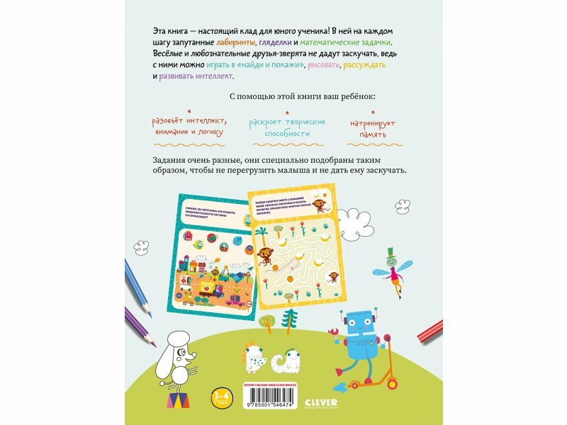 На страницах этой тетради живут очаровательные зверята, которые любят придумывать разные игры, фантазировать и решать творческие задачи. Ребенку предстоит отправиться вместе с ними в познавательное путешествие, проявить смекалку и сообразительность: раскрасить по номерам все картинки, пройти все лабиринты, найти все отличия, всё сосчитать, нарисовать и даже придумать истории.