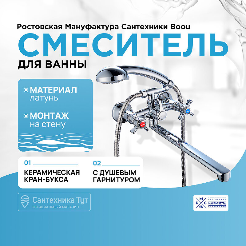 Смеситель для ванны Ростовская Мануфактура Сантехники Boou BA5333-4-B723-C018 универсальный.
