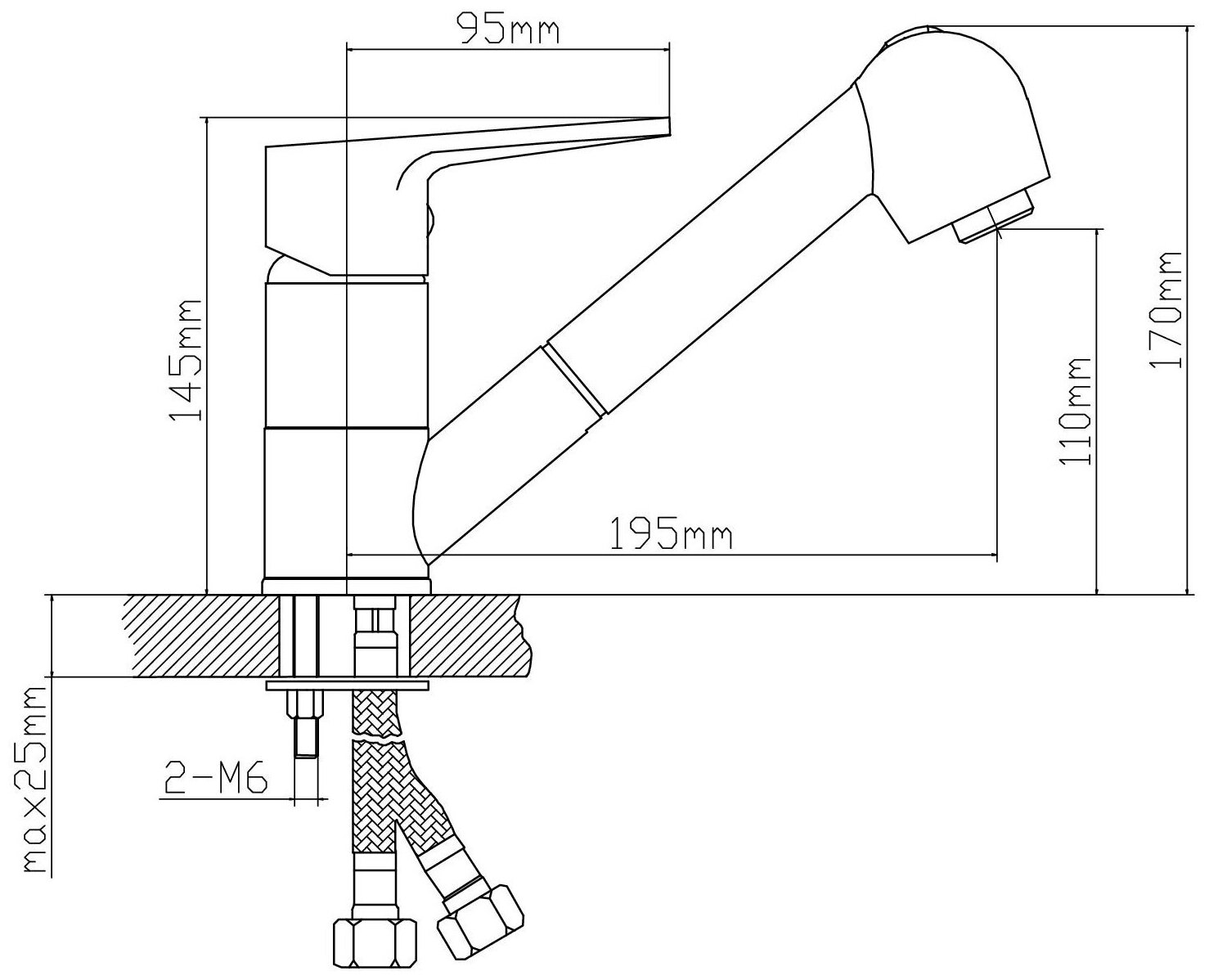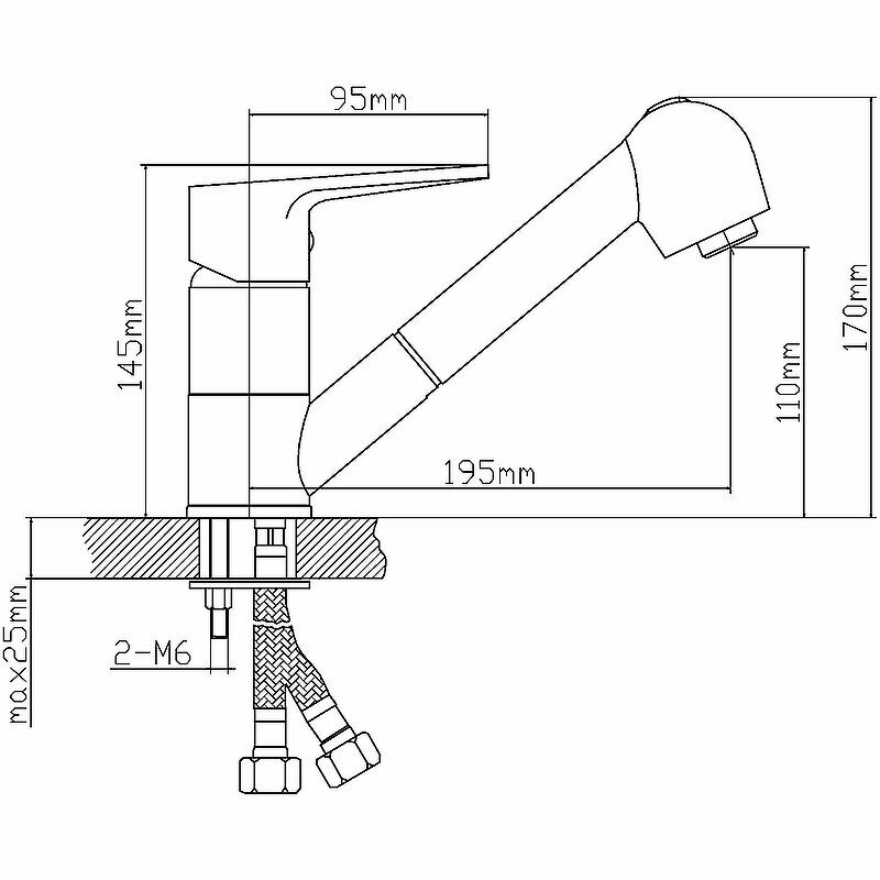 - Излив: вытяжная лейка с гибким шлангом.