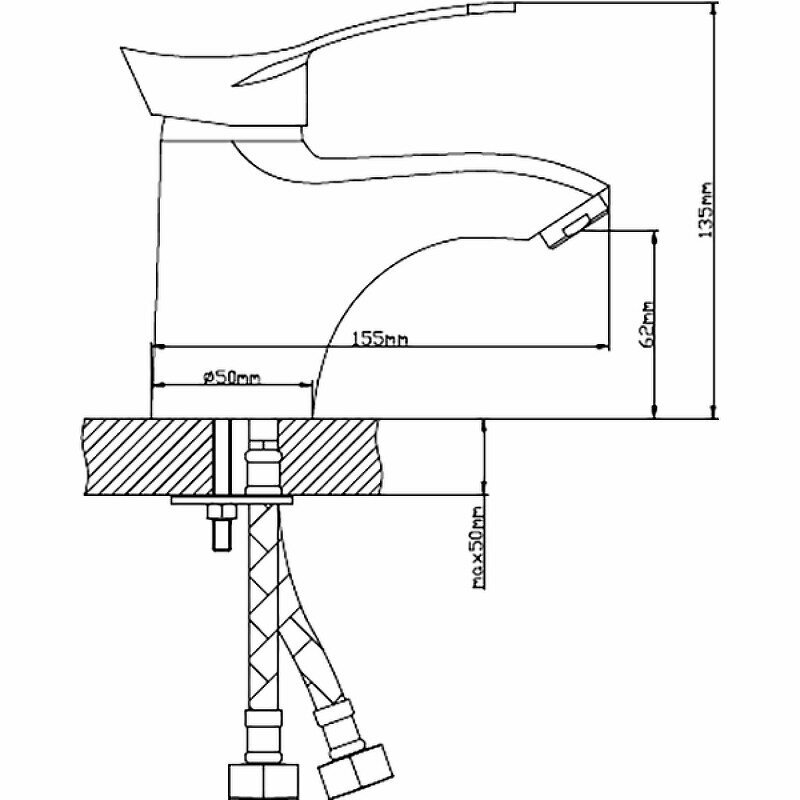 - Тип подводки: гибкая, в металлической оплетке, длиной 60 см.