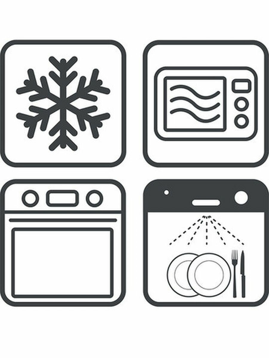 | Уход | Не предназначены для непосредственного контакта с открытыми источниками тепла (газовая горелка, электрическая плита, гриль или индукционнаяварочная панель). |