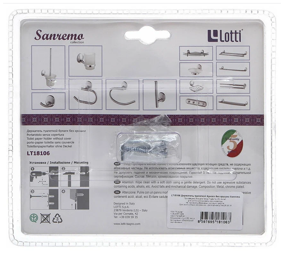 Сервис сравнения цен СкидкаГИД предлагает сравнить цены на товар «Держатель Lotti Sanremo lt18106»