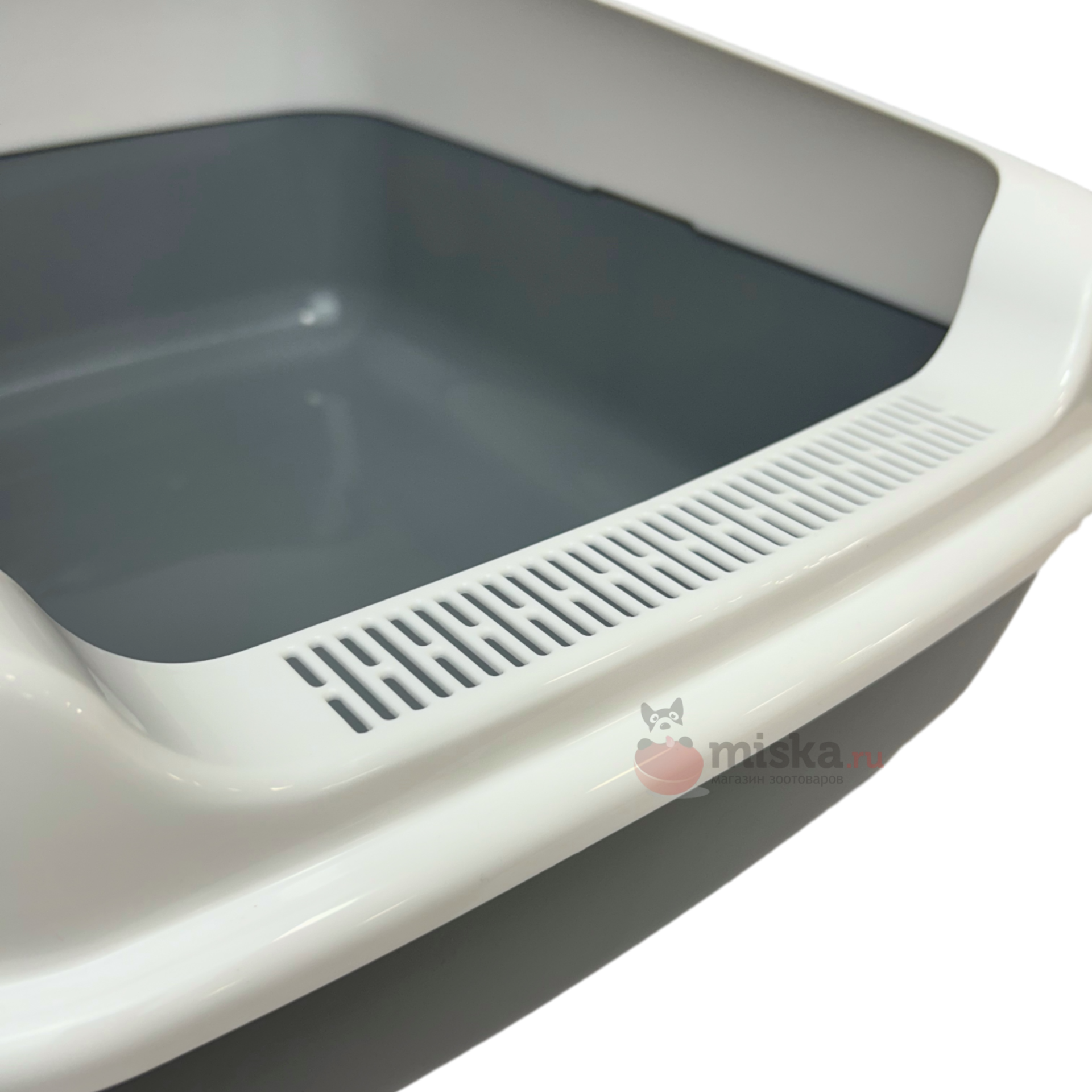Лоток для кошек с высокими бортами изготовлен из прочного пластика, безопасен для здоровья питомца и не имеет посторонних химических запахов. Главным преимуществом изделия являются продуманные до мелочей размеры изделия, благодаря которым изделие подойдет даже для крупных пород. Такой туалет можно использовать как лоток для собак или других домашним животных. Благодаря высокому борту наполнитель не разбрасывается по комнате, а остается в лотке. Борт крепится к лотку крепкими защелками и легко убирается при необходимости. Помимо этого, изделие имеет эргономичную форму и актуальный цвет, который прекрасно впишется в любой интерьер. К изделию можно приобрести совок, который будет крепится на борт, и сетку с высокими ножками, которая будет позволять использование всех видов наполнителя. Используется в качестве туалета для питомцев. Материал: пластик; Размер: 50,5 х 39 х 23 см; Цвет: серый.