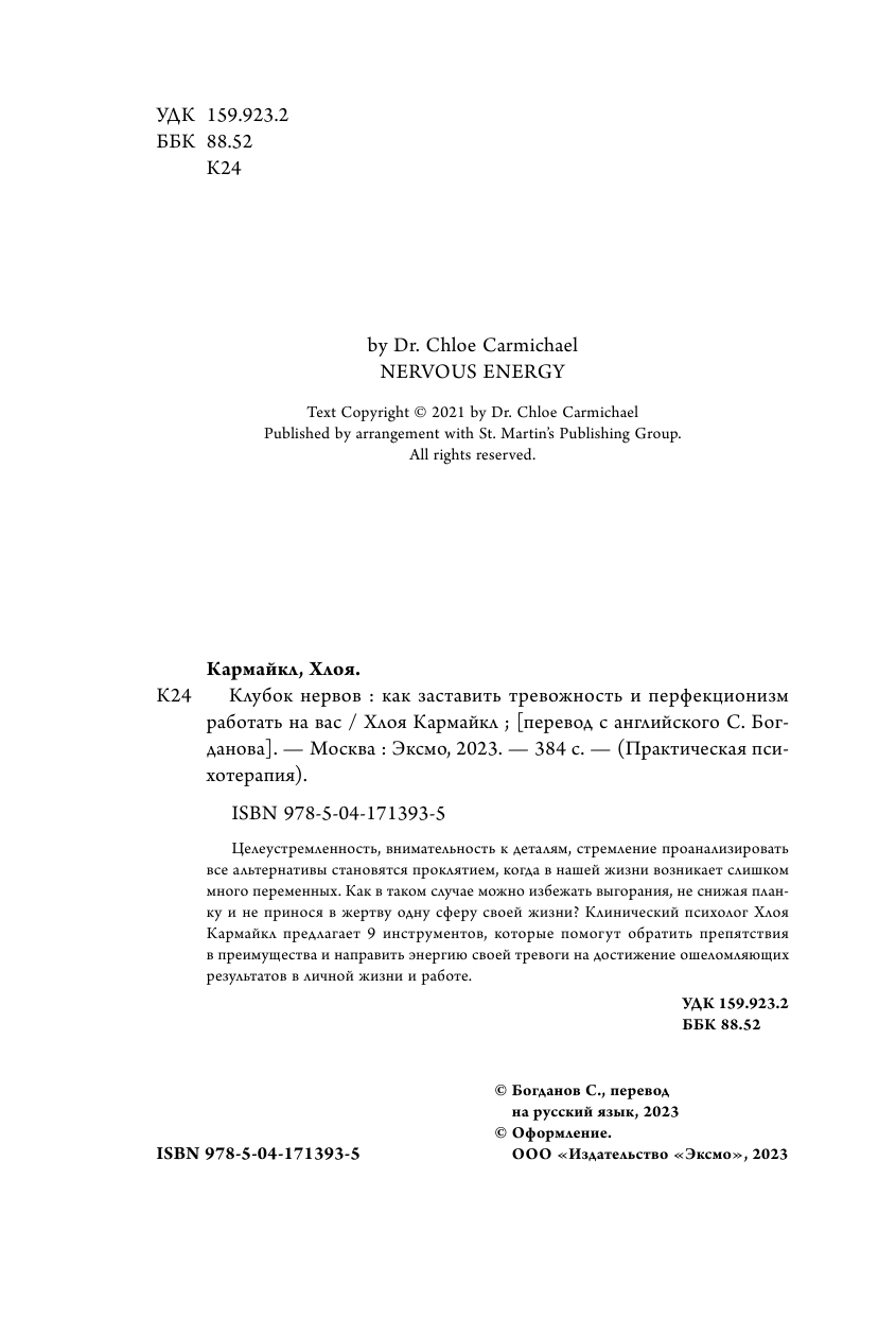 Клубок нервов. Как заставить тревожность и перфекционизм работать на вас (Хлоя Кармайкл); Эксмо, 2022