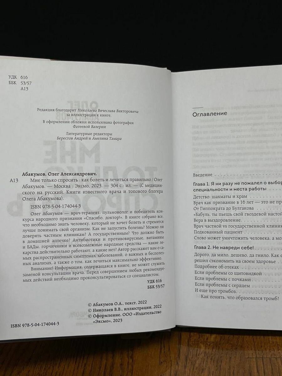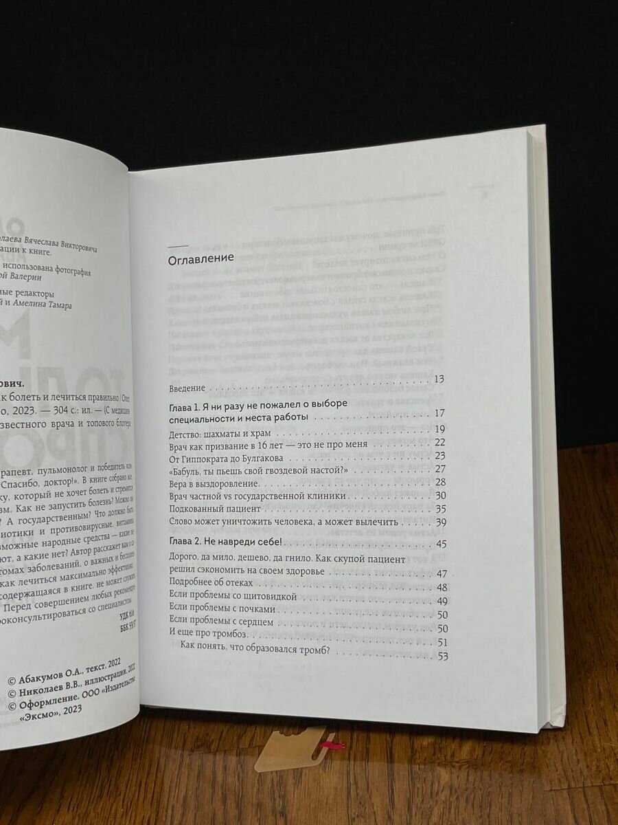 Приобрела данную книгу известного врача-терапевта Олега Абакумова, который в социальных сетях ведёт свой супер блог, где даёт ценные советы, наставления и рекомендации относительно здоровья. Книга - огонь!!! И качество, и информация, и язык изложения - всё на высоте. Эта книга о симптомах болезней, от простых до более серьёзных... Какие применять меры и действия, чтобы помочь самому себе... Какие первые "звоночки" организма просят о помощи... Содержание книги чёткое, понятно изложено, непосредственно, с примерами из жизни и в то же время с незначительной долей юмора. Это не первая книга Олега Абакумова. Есть ценные издания в электронном виде, которые также приобретены мной. Но сколько радости привнесла эта книга!!! Ведь можно полистать страницы, почитать подробное содержание, предметный указатель.