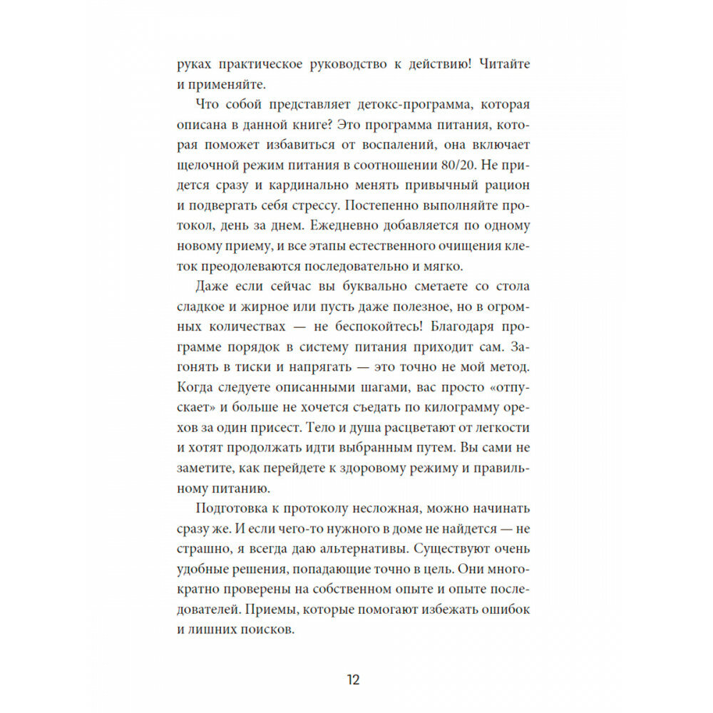 Хроническая усталость, плохое настроение, частые простуды, лишний вес не уходит, кожа плохо выглядит. Причина всего этого может скрываться в каждой клеточке вашего тела. Невидимый враг, который по капле забирает здоровье, красоту и жизненную энергию. Лекарства только укрепляют его, а полезная пища и витамины просто не усваиваются как надо, пока он сидит внутри и копит свои силы, отнимая ваши. Токсины! Не пора ли выгнать их прочь? Невозможно вылечить только часть тела, пытаясь побороть медикаментами головную боль, вызванную интоксикацией, или избавляясь от прыщей с помощью косметолога. Человеческий организм обладает совершенными механизмами для очищения, детоксикации и восстановления баланса. Единственное, что нужно сделать, — не мешать, а помочь. Книга основателя передовых российских школ нутрициологии Натальи Шульга — это идеальная инструкция по безопасному детоксу. Рекомендации профессионального сертифицированного нутрициолога просты в применении и не вызывают стресса. Никакого экстрима, мягко и эффективно верните себе цветущий вид, отличное самочувствие, а бонусом получите омоложение.
