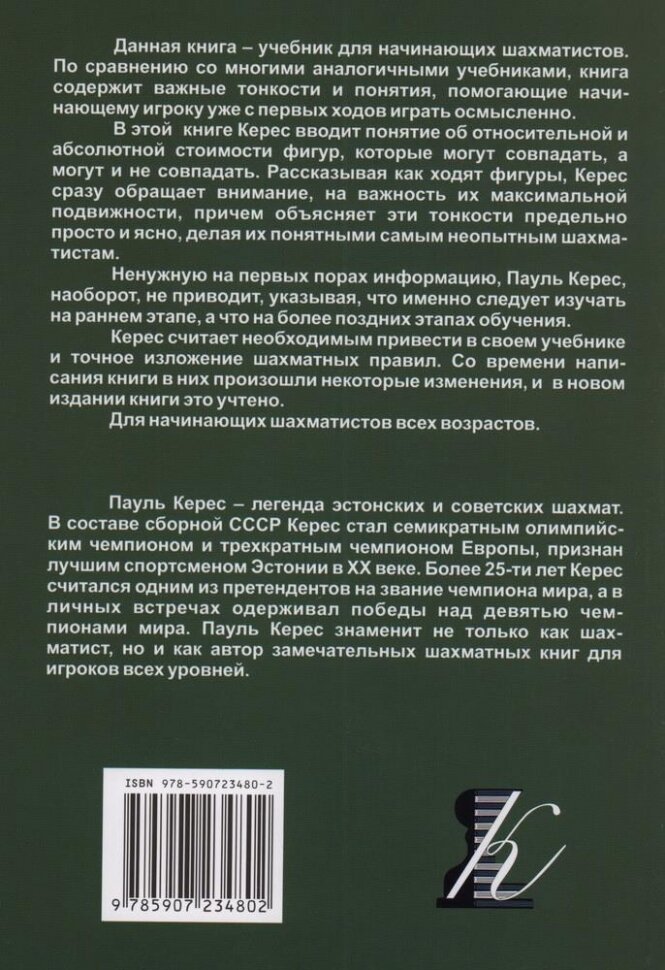 Книга: Школа шахматной игры (Керес Пауль Петрович); Издательство "Калиниченко", 2022