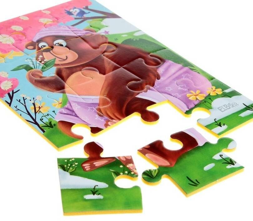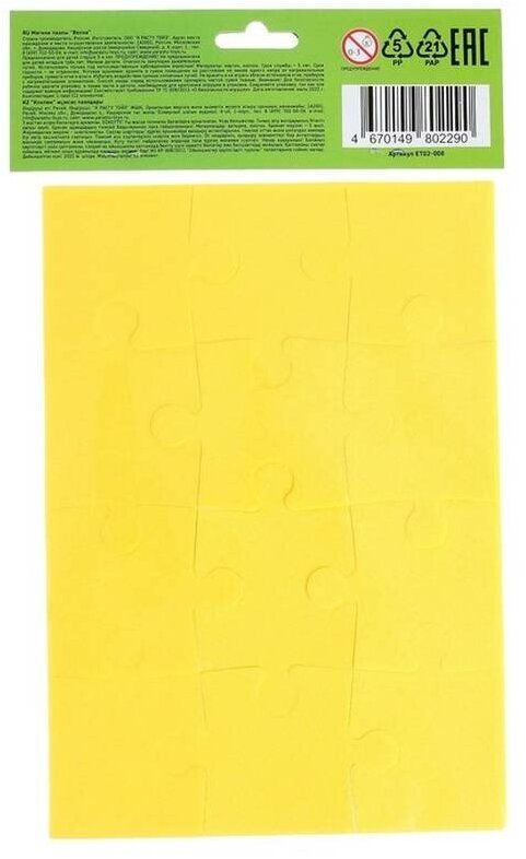 Мягкие магнитные объемные детали из вспененного полимера. Пазлы разделены на 12 элементов. Пазлы легко крепятся к любой металлической поверхности. Размер готового пазла — формат А5.
