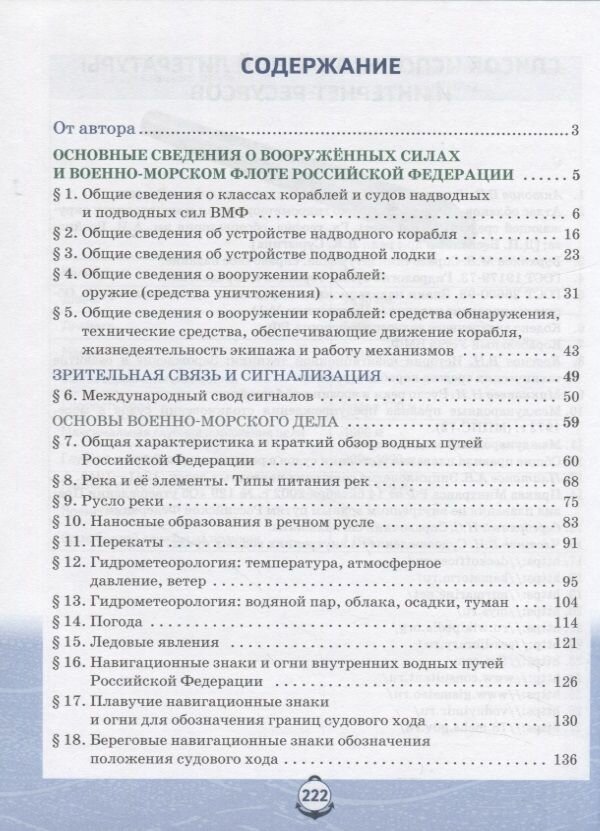 В учебнике изложены сведения о классификации современных надводных кораблей и подводных лодок, рассмотрены принципы их устройства и общие данные о вооружении, международный свод сигналов, устройство корпуса маломерного судна и организация судовых работ, основные положения лоции внутренних водных путей и правила плавания по внутренним водным путям.