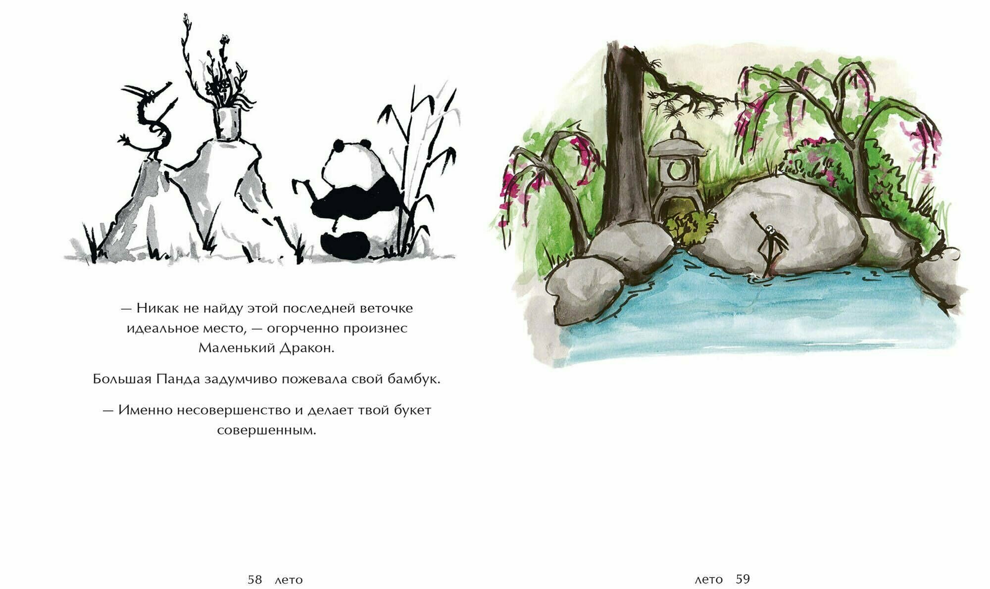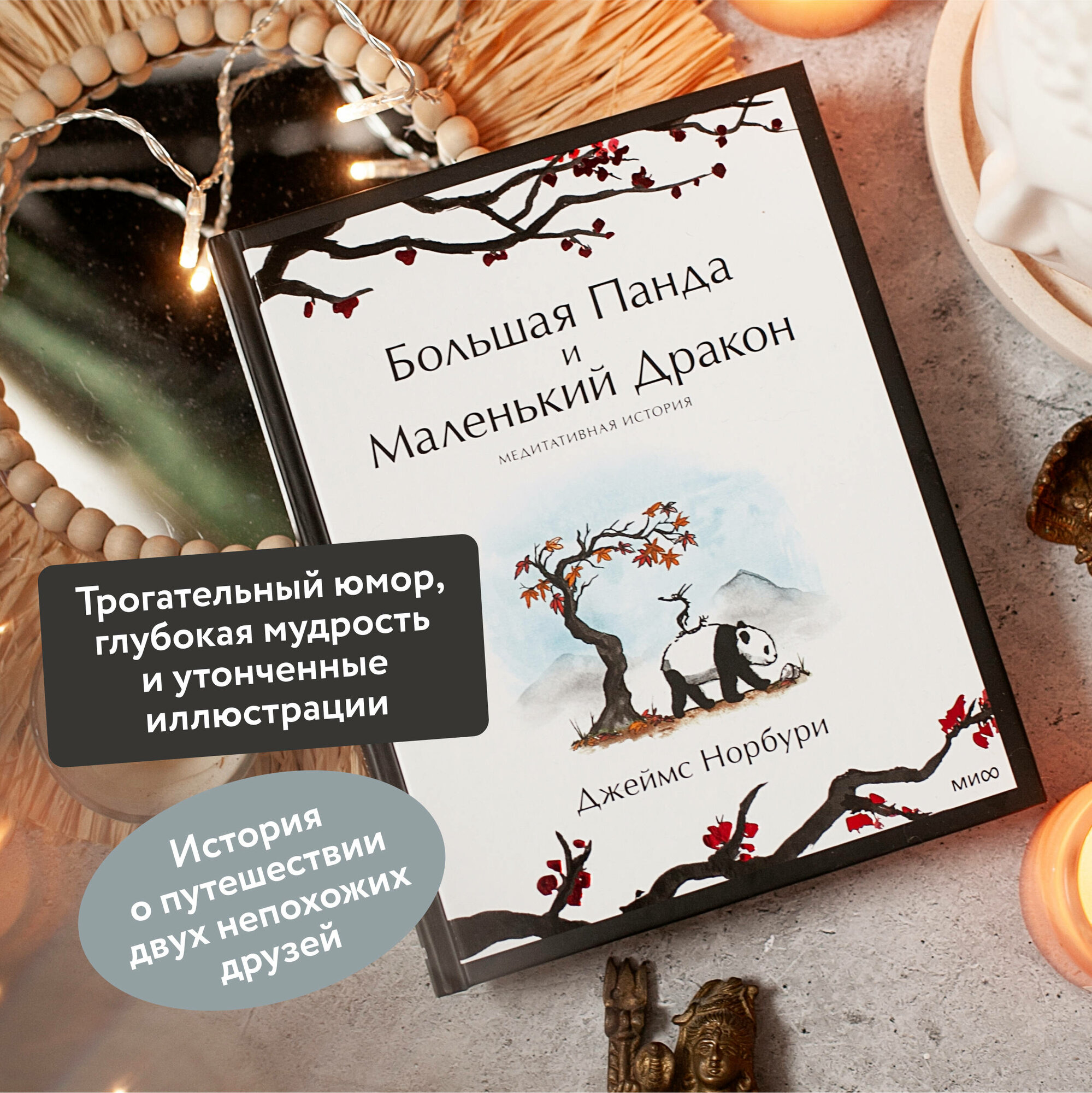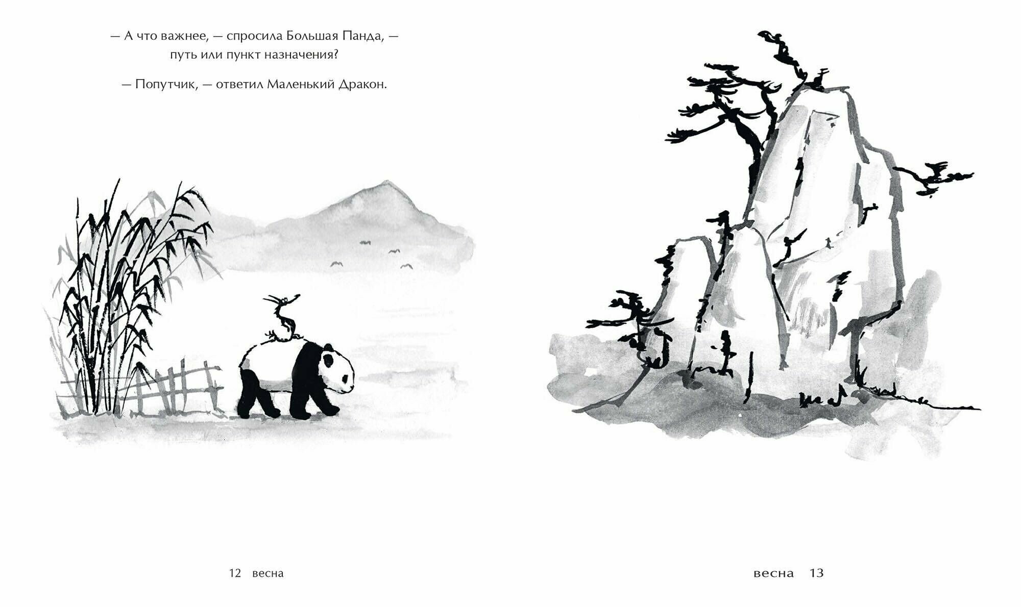 Эта книга — трогательная история для взрослых о поиске себя. Большая Панда и Маленький Дракон отправляются в путешествие по временам года. Они часто теряются, как и многие из нас. Но, заблудившись, делают для себя множество прекрасных открытий.