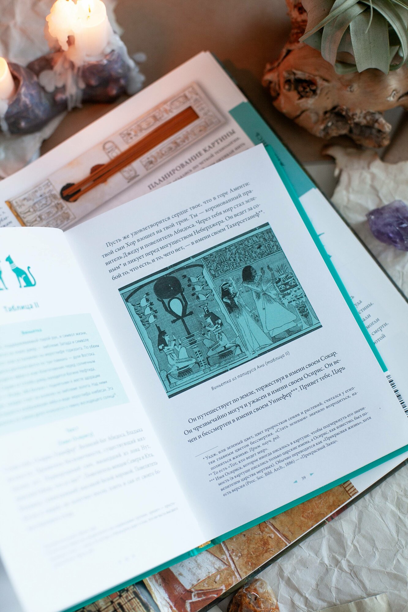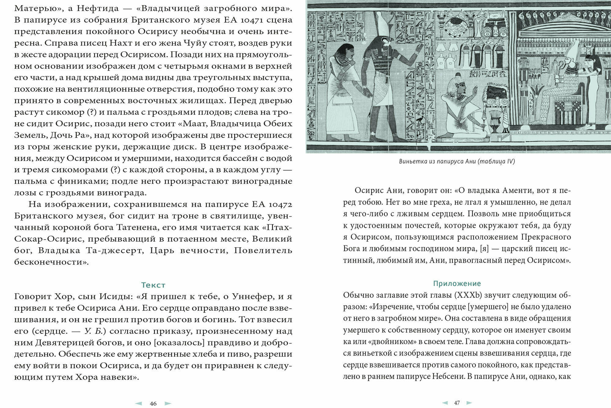 Издание вышло просто потрясающим! Переплет, оформление и иллюстрации выполнены в единой цветовой гамме. Подобран очень приятный мятный цвет, который соединяет комментарии ученых, разрозненные фрагменты текста и примечания в единое целое. Сам текст не из тех, которые будет легко осилить за один вечер. Самые базовые знания египетской мифологии действительно помогают лучше понять, о чем идет речь, хотя даны достаточно подробные разъяснения. В этой книге египетская мифология и культура раскрываются во всей своей величественной красоте и жизнелюбии, хотя, казалось бы, речь идет о похоронных обрядах и загробном царстве.