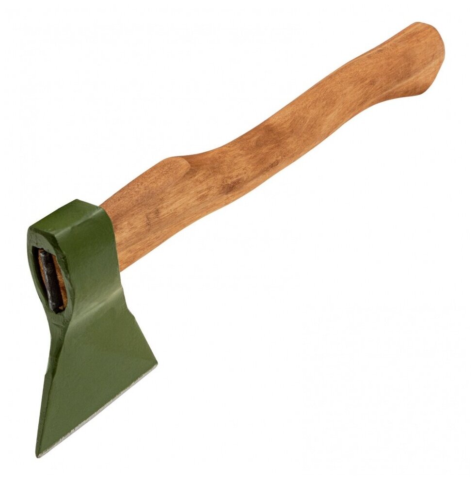 Топор изготовлен из 45 стали . Топорище инструмента изготовлена из древесины твердых лиственных пород. Вес с топорищем 850 г. Общая длина в сборе составляет 400 мм.