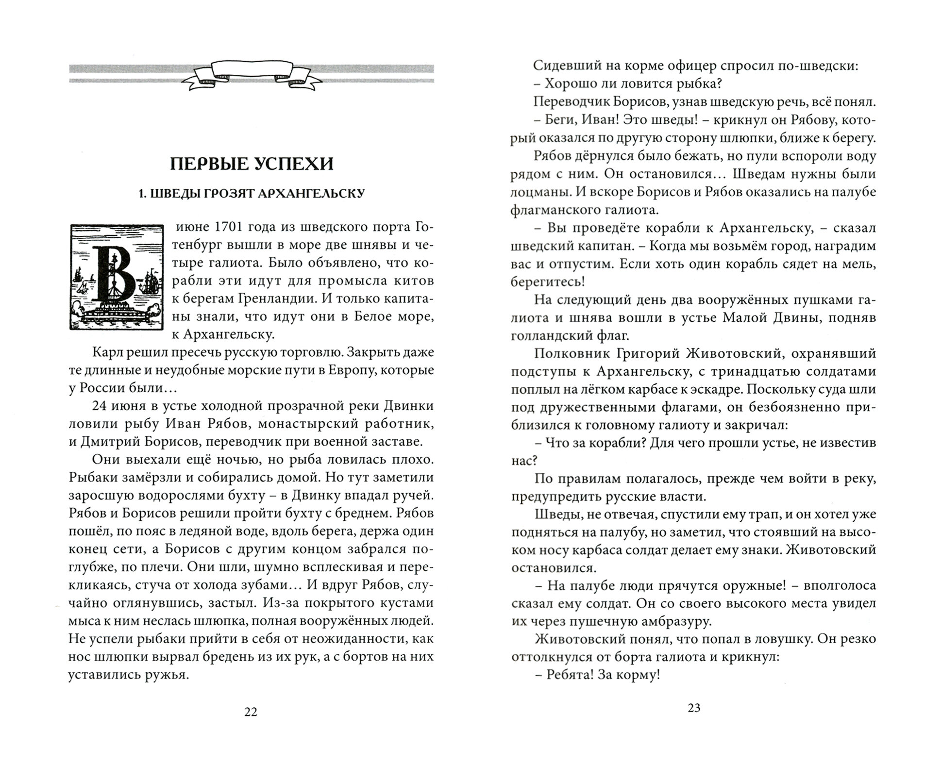 Это была трудная война. Бои шли двадцать один год – на суше и на море, в России и в Европе. Месяц за месяцем, год за годом рассказан в книге ход военных действий: тяжёлые поражения и нелегко доставшиеся победы, крупные сражения и кавалерийские налёты, осады крепостей и абордажные схватки. Изнурительный, кровавый быт войны И всё это – яркий фон, на котором вырастает полководец Пётр, стратег и тактик, и одновременно формируется в испытаниях новая победоносная русская армия.