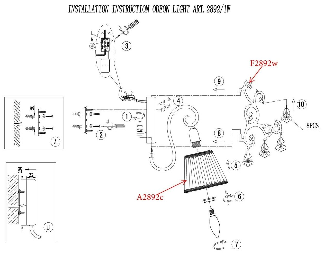 Бра серии Gronta выполнена в белом цвете. Бра украшена пластиковым декором и хрустальными подвесками, абажуры из ткани . Цоколь Е14. Мощность 1х60W. Нет ламп в комплекте.