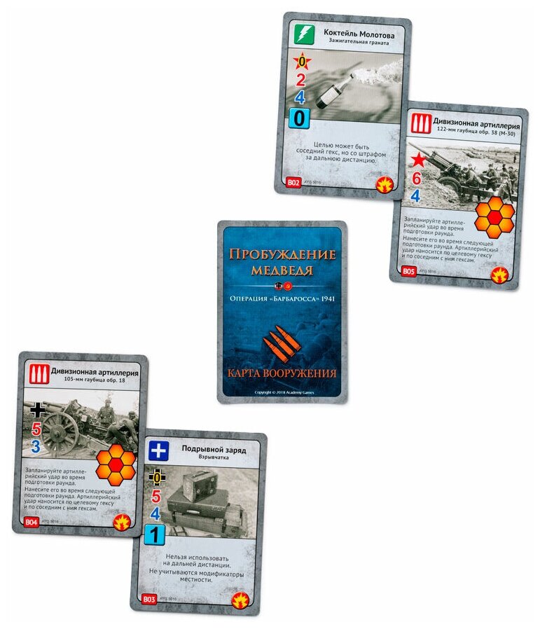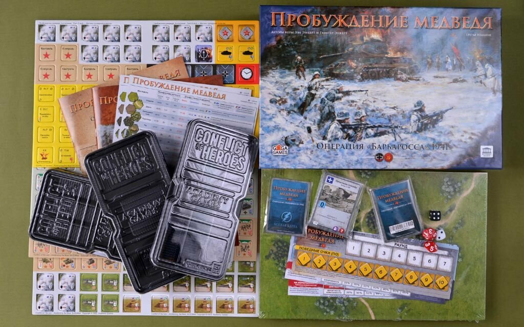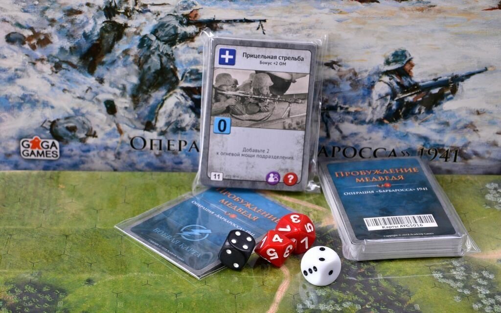 Пробуждение Медведя — это тактический варгейм, повествующий о первых годах Великой Отечественной войны. Вас ждут 16 совершенно разных сценариев, обыгрывающих реальные сражения 1941–1942 годов. Попробуйте захватить в плен вражеского генерала или прорваться сквозь линии врага и спасти попавшие в окружение отряды!Пробуждение Медведя: чуть больше об игреБазовые правила игры довольно просты и хорошо структурированы: после первых нескольких страниц вам предложат сыграть в первый сценарий, а уже перед каждым последующим стоит заглядывать в книгу правил и знакомиться с новыми механиками. Если в начале вам доступны лишь равнинные местности и с десяток пеших стрелков, то с каждой новой миссией игра будет становиться разнообразнее. Появится боевая техника, солдаты научатся скрываться от глаз противника, смогут совершать артиллерийские удары, штурмовать высоты и расстреливать врагов из пулемётов. Чем глубже вы будете погружаться в книгу сценариев, тем больше деталей будет доступно — а значит, тем больше любопытных игровых ситуаций ждёт вас во время партии.