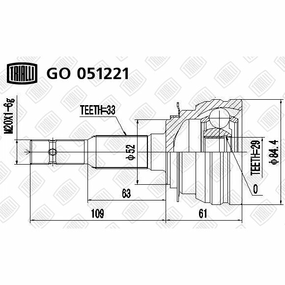 ШРУС наружный для автомобилей Daewoo Nexia (95-)/Chevrolet Lanos (97-) DOHC TRIALLI (GO 051221)