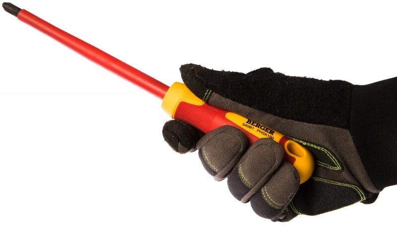 Диэлектрическая крестовая отвертка PH3*150мм, до 1000V Berger BG имеет высококачественный изоляционный слой, который надежно защищает пользователя от риска удара током при проведении крепежных операций. Ручка инструмента имеет анатомическую форму и не скользит в ладони.