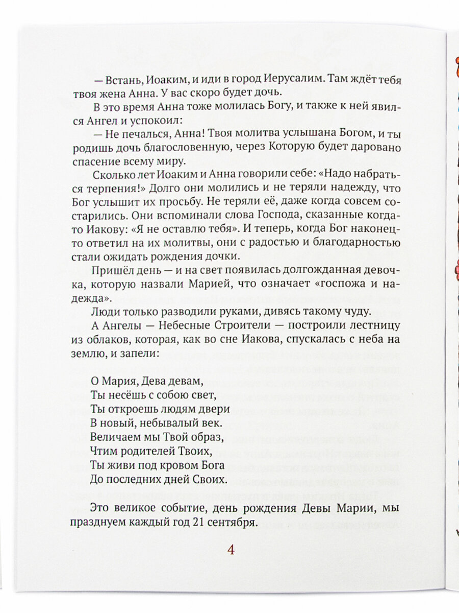 Эта книга в художественной форме рассказывает детям о событиях Священной истории, в честь которых Православной Церковью установлены двенадцать главных праздников годового богослужебного круга и Господня Пасха. Занимательно и интересно, просто и понятно, благоговейно и деликатно автор знакомит юных читателей с основополагающими вехами земной жизни Господа Иисуса Христа, Пресвятой Богородицы, святых апостолов. Читая эти истории, произошедшие много веков назад, дети как будто сами становятся свидетелями важнейших для каждого христианина событий и лучше начинают понимать их суть и смысл.