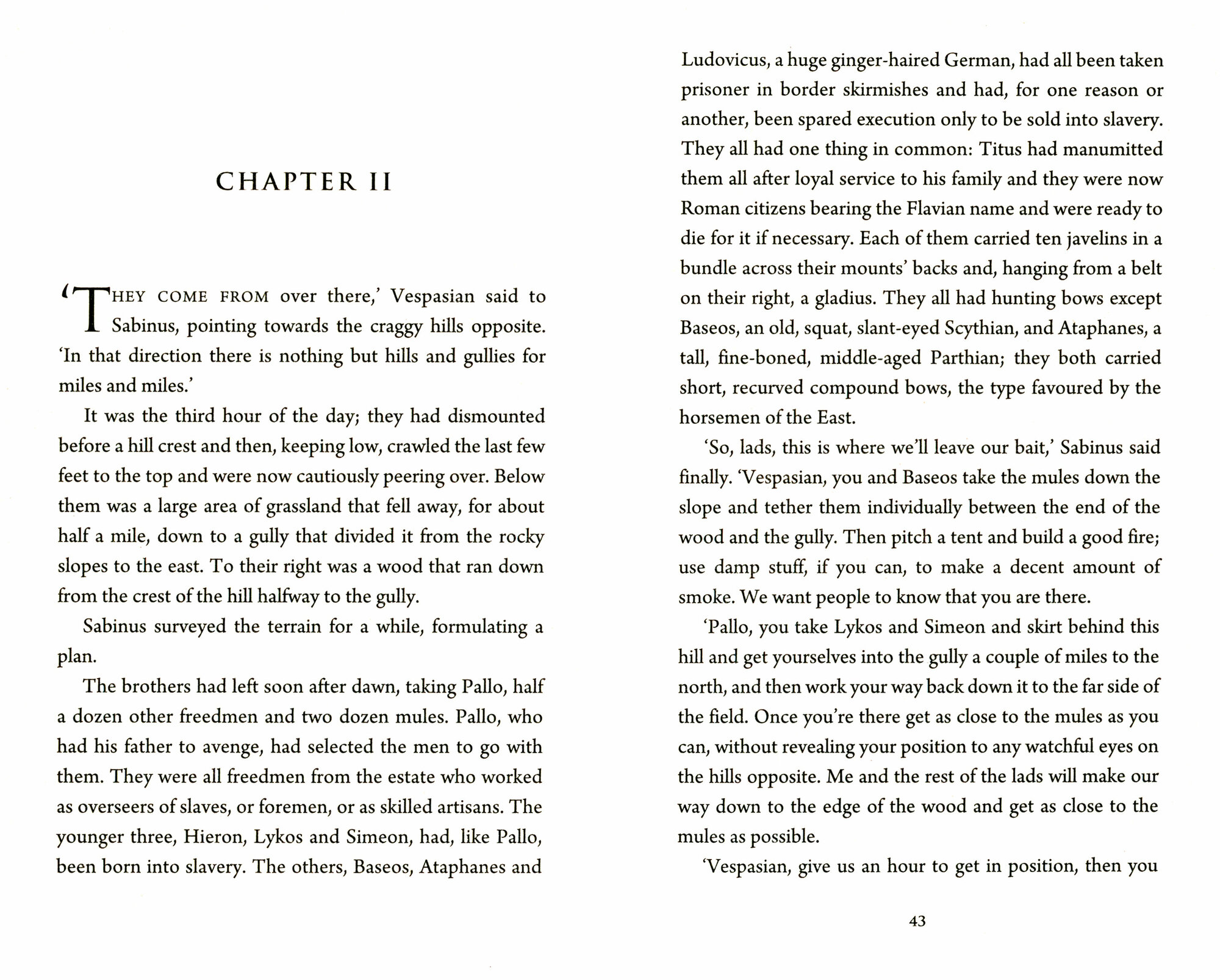 "One Man Born in rural obscurity One Destiny To become one of Rome's greatest Emperors 26 AD: Sixteen-year-old Vespasian leaves his family farm for Rome, his sights set on finding a patron and following his brother into the army. But he discovers a city in turmoil and an Empire on the brink. The aging emperor Tiberius is in seclusion on Capri, leaving Rome in the iron grip of Sejanus, commander of the Praetorian Guard. Sejanus is ruler of the Empire in all but name, but many fear that isn't enough for him. Sejanus' spies are everywhere - careless words at a dinner party can be as dangerous as a barbarian arrow. Vespasian is totally out of his depth, making dangerous enemies (and even more dangerous friends - like the young Caligula) and soon finds himself ensnared in a conspiracy against Tiberius. With the situation in Rome deteriorating, Vespasian flees the city to take up a position as tribune in an unfashionable legion on the Balkan frontier. Even here, rebellion is in the air and unblooded and inexperienced, Vespasian must lead his men in savage battle with hostile mountain tribes. Vespasian will soon realize that he can't escape Roman politics any more than he can escape his destiny..."