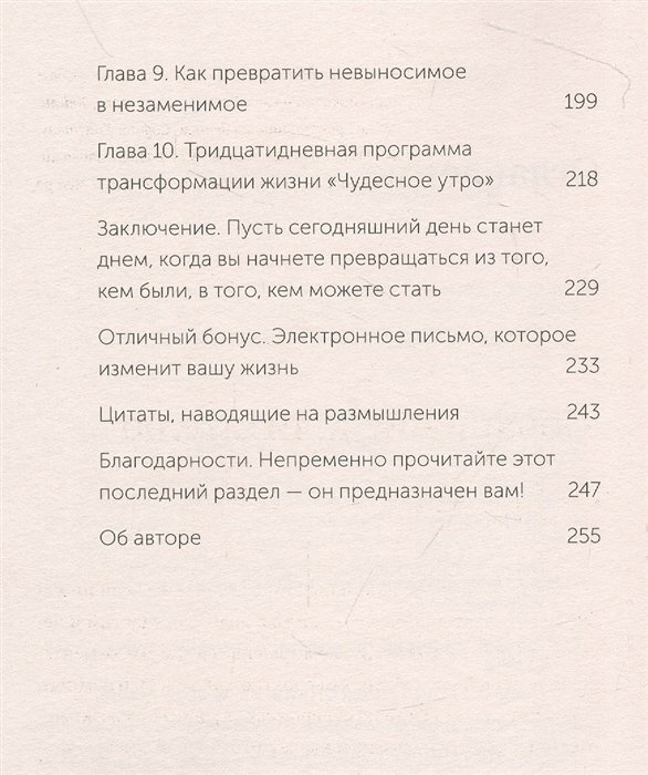 Какова бы ни была ваша цель - существенно изменить лишь некоторые ключевые аспекты своей жизни или радикально преобразовать все свое существование, чтобы все, с чем вам приходится бороться сейчас, стало лишь неприятным воспоминанием, - вы выбрали правильную книгу. Вы вот-вот отправитесь в чудесное путешествие и в пути, благодаря простому, но по-настоящему революционному процессу, уж точно измените любую сферу своей жизни - и все это вы сможете сделать в самом начале дня, до восьми часов утра.