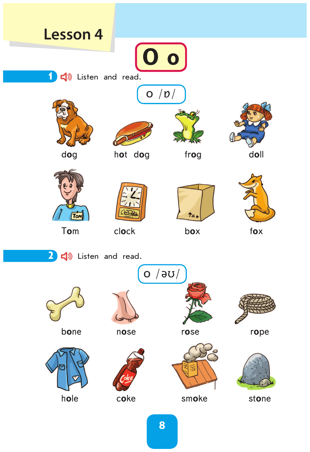 Эта книжка хороша тем, что в ней нет длинных слов и непонятных детям объяснений. В конце есть методические рекомендации для взрослых, они подскажут родителям, на что обратить внимание ребенка. Но в принципе можно и без них: примеров в каждом разделе дается достаточно, чтобы самостоятельно установить, в чем отличие, почему одни и те же буквы в разных случаях читаются по-разному. Произношение передается транскрипцией, но это не так важно: аудиосопровождение успешно ее заменяет. Оно же поможет при желании и транскрипцию тоже освоить, в дальнейшем это не помешает.